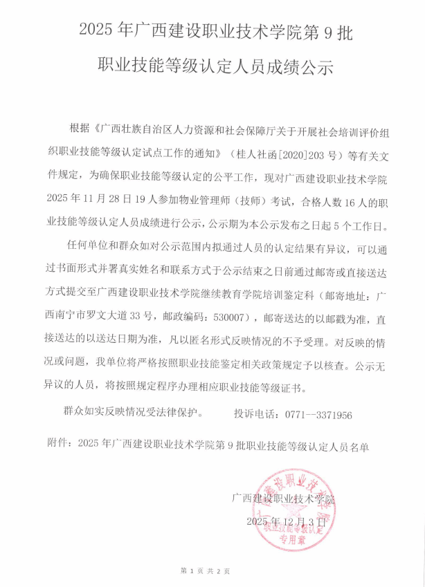 培训信息 当前位置: 首页 >> 培训信息 >> 正文 2025年乐鱼全球最大体育平台_乐鱼(中国)第9批职业技能等级认定人员成绩公示 发布日期:2025-12-03 点击: 附件【2025年乐鱼全球最大体育平台_乐鱼(中国)第9批职业技能等级认定人员成绩公示.pdf】已下载次