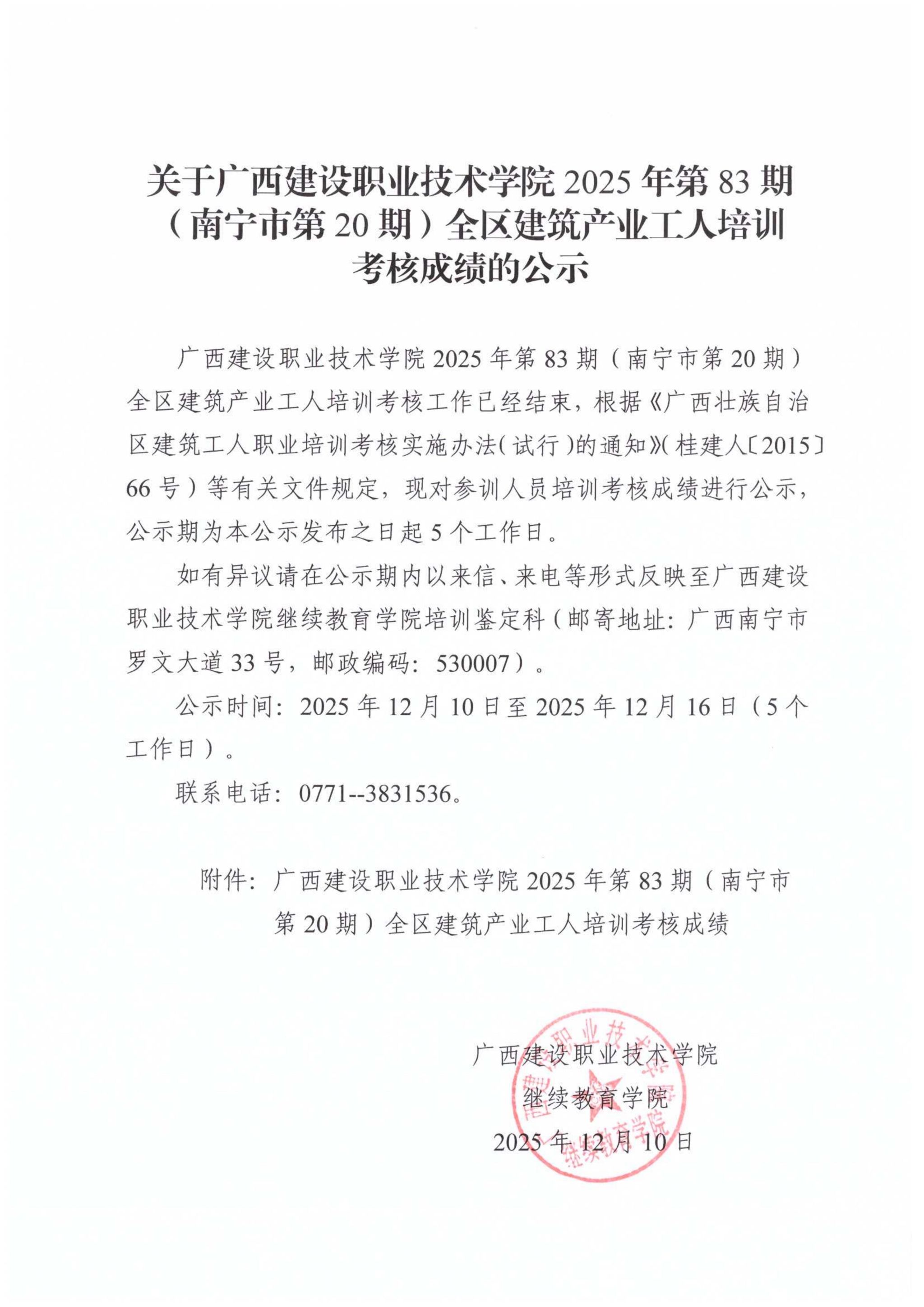 培训信息 当前位置: 首页 >> 培训信息 >> 正文 关于乐鱼全球最大体育平台_乐鱼(中国)2025年第83期(南宁市第20期)全区乐鱼全球最大体育平台_乐鱼(中国)产业工人培训考核成绩的公示 发布日期:2025-12-10 点击:
