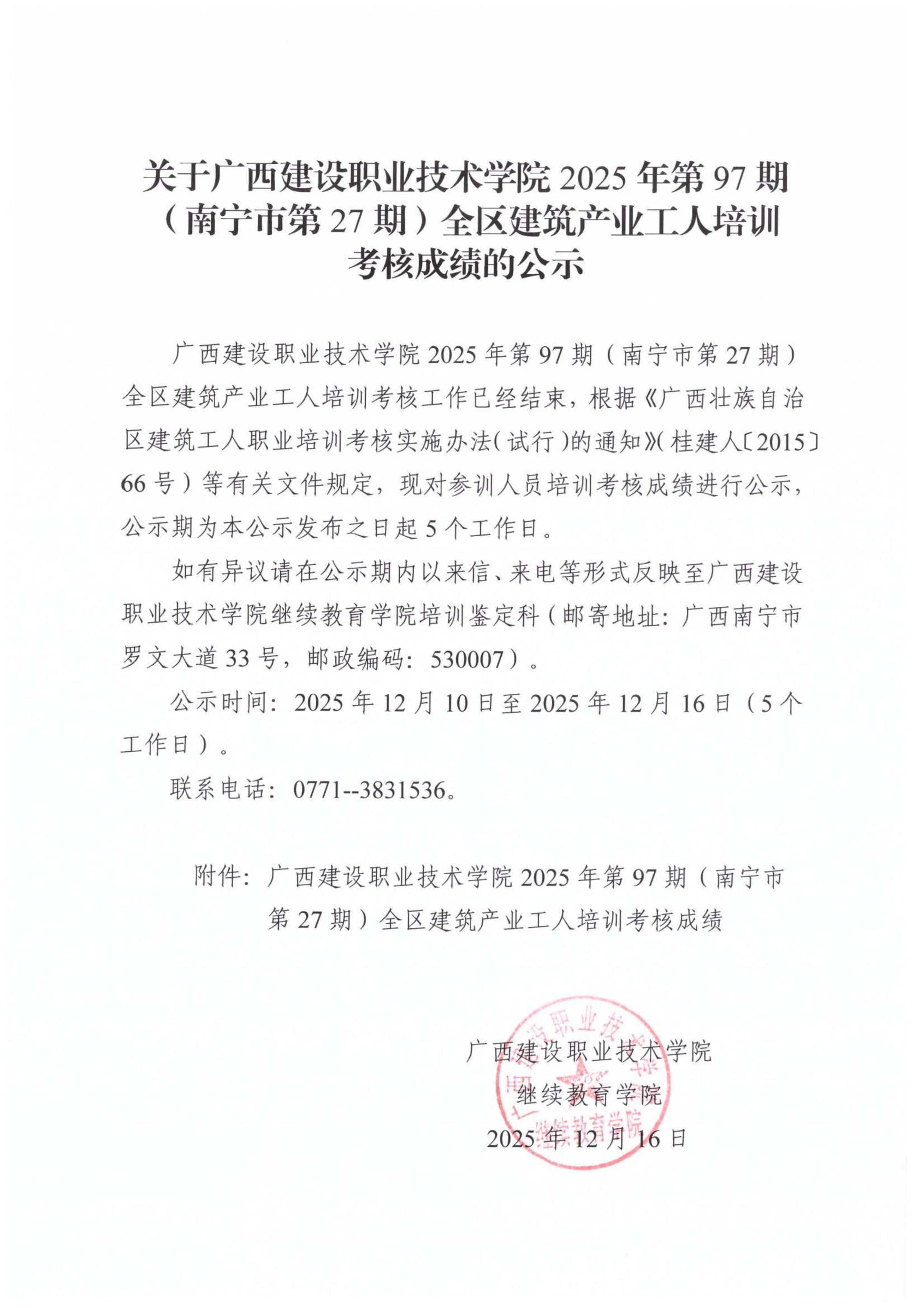 培训信息 当前位置: 首页 >> 培训信息 >> 正文 关于乐鱼全球最大体育平台_乐鱼(中国)2025年第97期(南宁市第27期)全区乐鱼全球最大体育平台_乐鱼(中国)产业工人培训考核成绩的公示 发布日期:2025-12-10 点击: