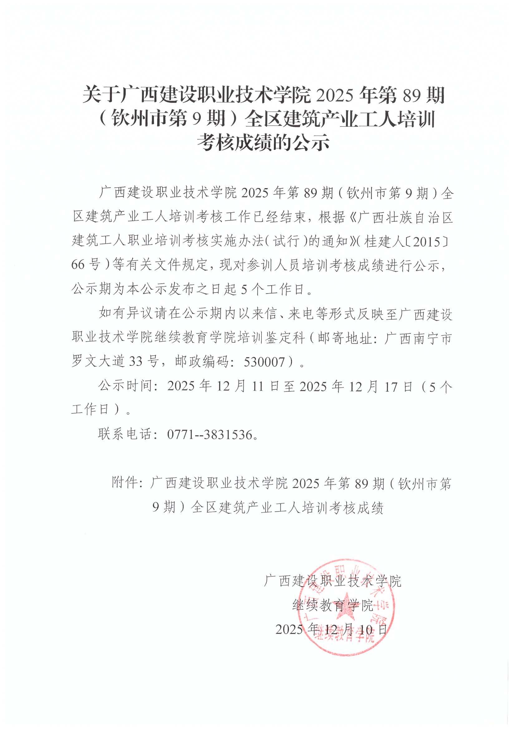 培训信息 当前位置: 首页 >> 培训信息 >> 正文 关于乐鱼全球最大体育平台_乐鱼(中国)2025年全区乐鱼全球最大体育平台_乐鱼(中国)产业工人第89期(钦州市第9期)培训考核成绩的公示 发布日期:2025-12-11 点击: