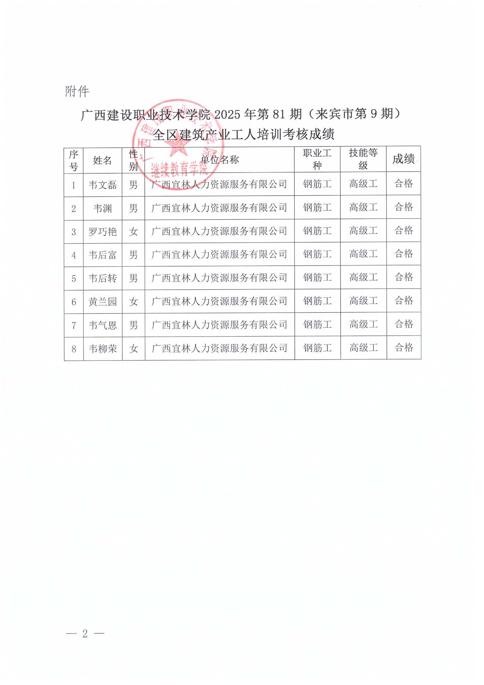 培训信息 当前位置: 首页 >> 培训信息 >> 正文 关于乐鱼全球最大体育平台_乐鱼(中国)2025年全区乐鱼全球最大体育平台_乐鱼(中国)产业工人第81期(来宾市第9期)培训考核成绩的公示 发布日期:2025-12-15 点击: 附件【关于乐鱼全球最大体育平台_乐鱼(中国)2025年全区乐鱼全球最大体育平台_乐鱼(中国)产业工人第81期(来宾市第9期)培训考核成绩的公示.pdf】已下载次