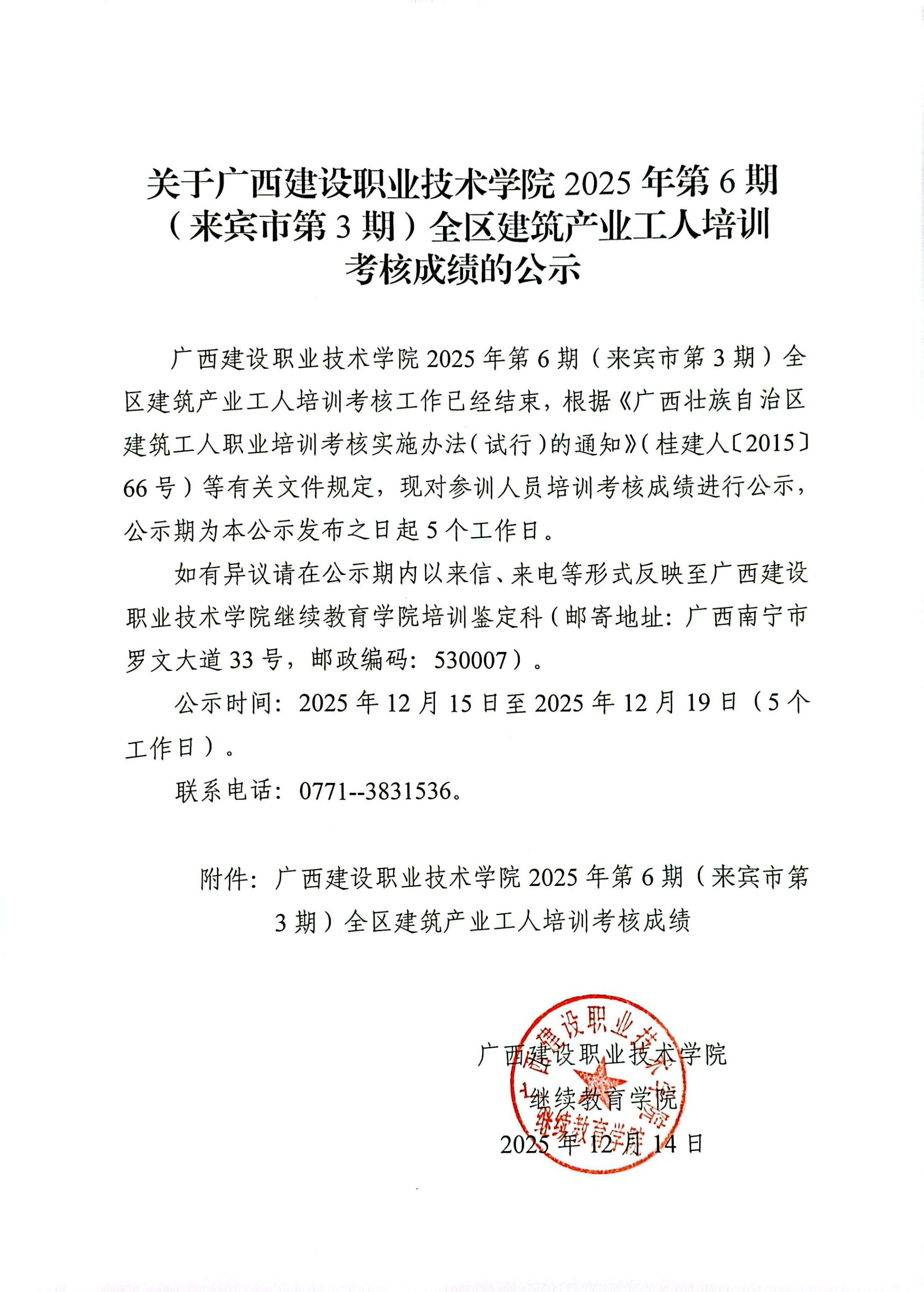 培训信息 当前位置: 首页 >> 培训信息 >> 正文 关于乐鱼全球最大体育平台_乐鱼(中国)2025年全区乐鱼全球最大体育平台_乐鱼(中国)产业工人第6期(来宾市第3期)培训考核成绩的公示 发布日期:2025-12-15 点击: 附件【关于乐鱼全球最大体育平台_乐鱼(中国)2025年全区乐鱼全球最大体育平台_乐鱼(中国)产业工人第6期(来宾市第3期)培训考核成绩的公示.pdf】已下载次