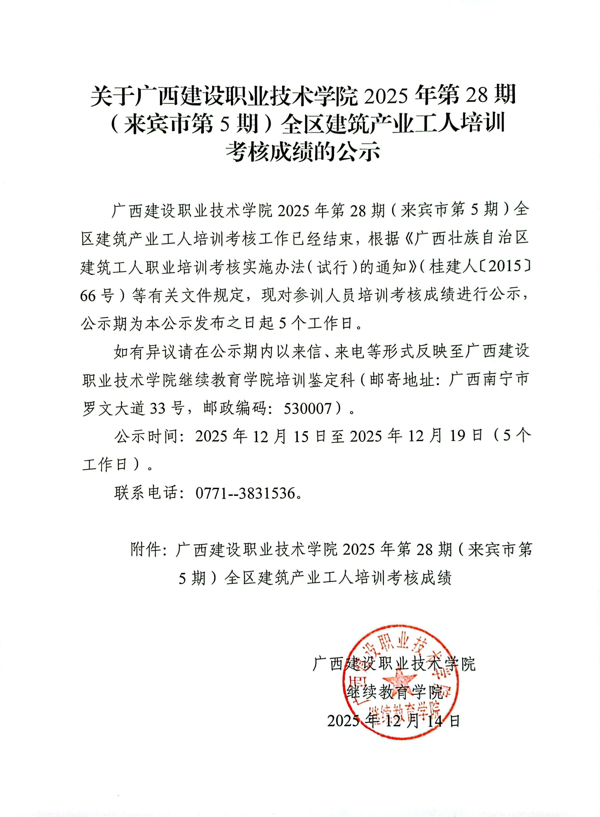培训信息 当前位置: 首页 >> 培训信息 >> 正文 关于乐鱼全球最大体育平台_乐鱼(中国)2025年全区乐鱼全球最大体育平台_乐鱼(中国)产业工人第28期(来宾市第5期)培训考核成绩的公示 发布日期:2025-12-15 点击: 附件【关于乐鱼全球最大体育平台_乐鱼(中国)2025年全区乐鱼全球最大体育平台_乐鱼(中国)产业工人第10期(来宾市第4期)培训考核成绩的公示.pdf】已下载次