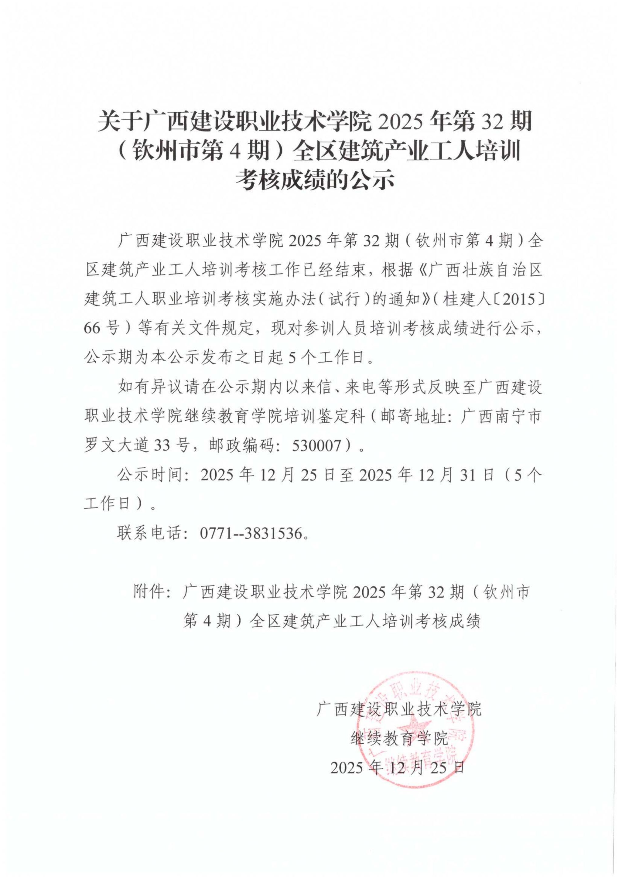 培训信息 当前位置: 首页 >> 培训信息 >> 正文 关于乐鱼全球最大体育平台_乐鱼(中国)2025年第32期(钦州市第4期)全区乐鱼全球最大体育平台_乐鱼(中国)产业工人培训考核成绩的公示 发布日期:2025-12-25 点击: 附件【关于乐鱼全球最大体育平台_乐鱼(中国)2025年第32期(钦州市第4期)全区乐鱼全球最大体育平台_乐鱼(中国)产业工人培训考核成绩的公示.pdf】已下载次