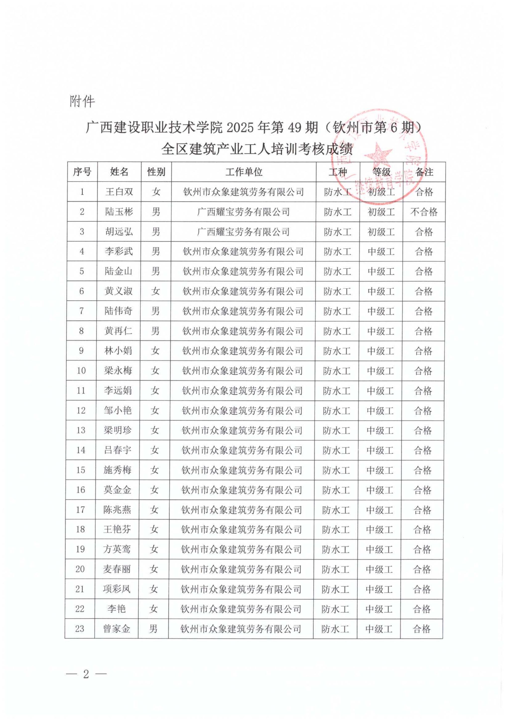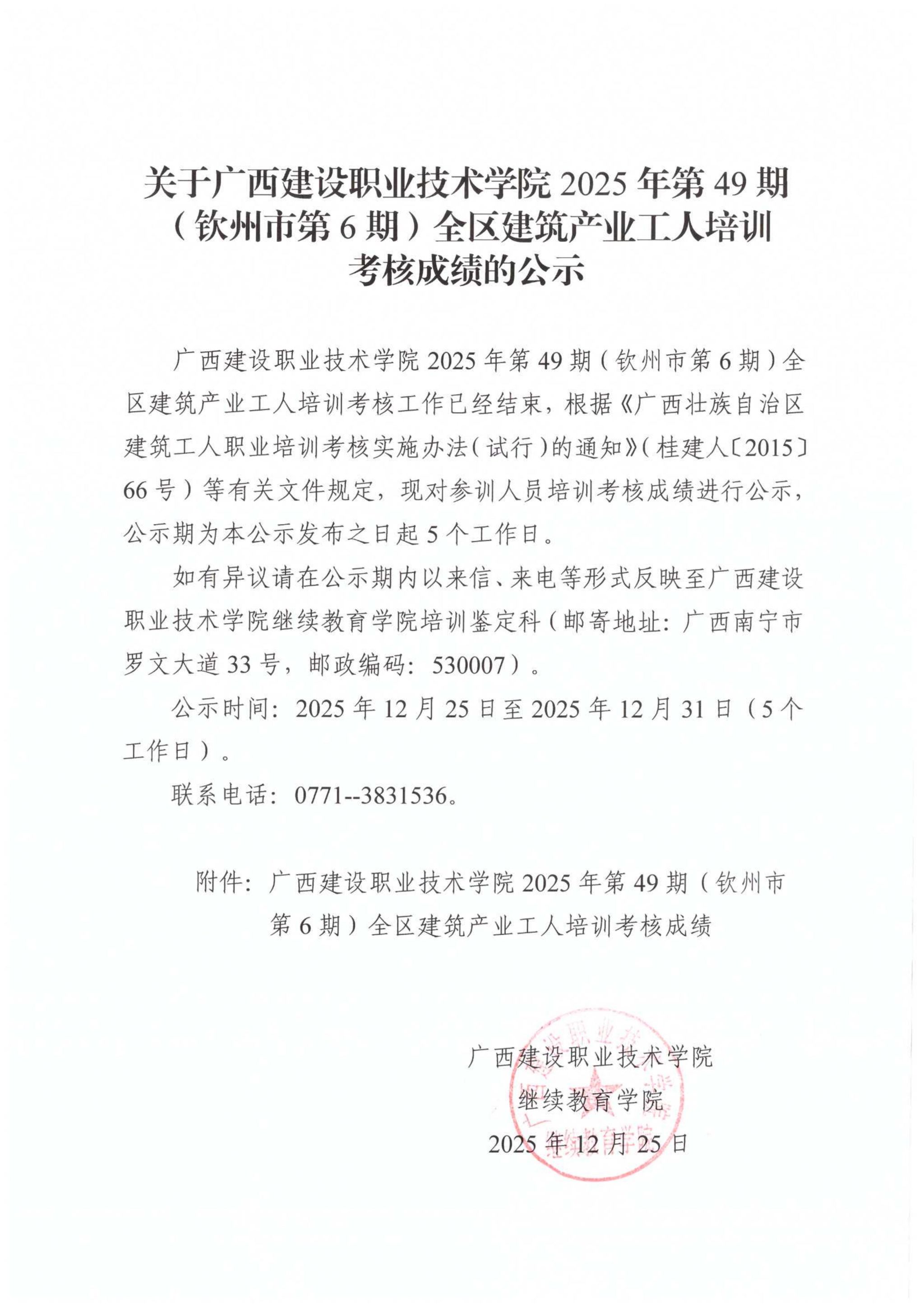 培训信息 当前位置: 首页 >> 培训信息 >> 正文 关于乐鱼全球最大体育平台_乐鱼(中国)2025年第49期(钦州市第6期)全区乐鱼全球最大体育平台_乐鱼(中国)产业工人培训考核成绩的公示 发布日期:2025-12-25 点击: 附件【关于乐鱼全球最大体育平台_乐鱼(中国)2025年第49期(钦州市第6期)全区乐鱼全球最大体育平台_乐鱼(中国)产业工人培训考核成绩的公示.pdf】已下载次