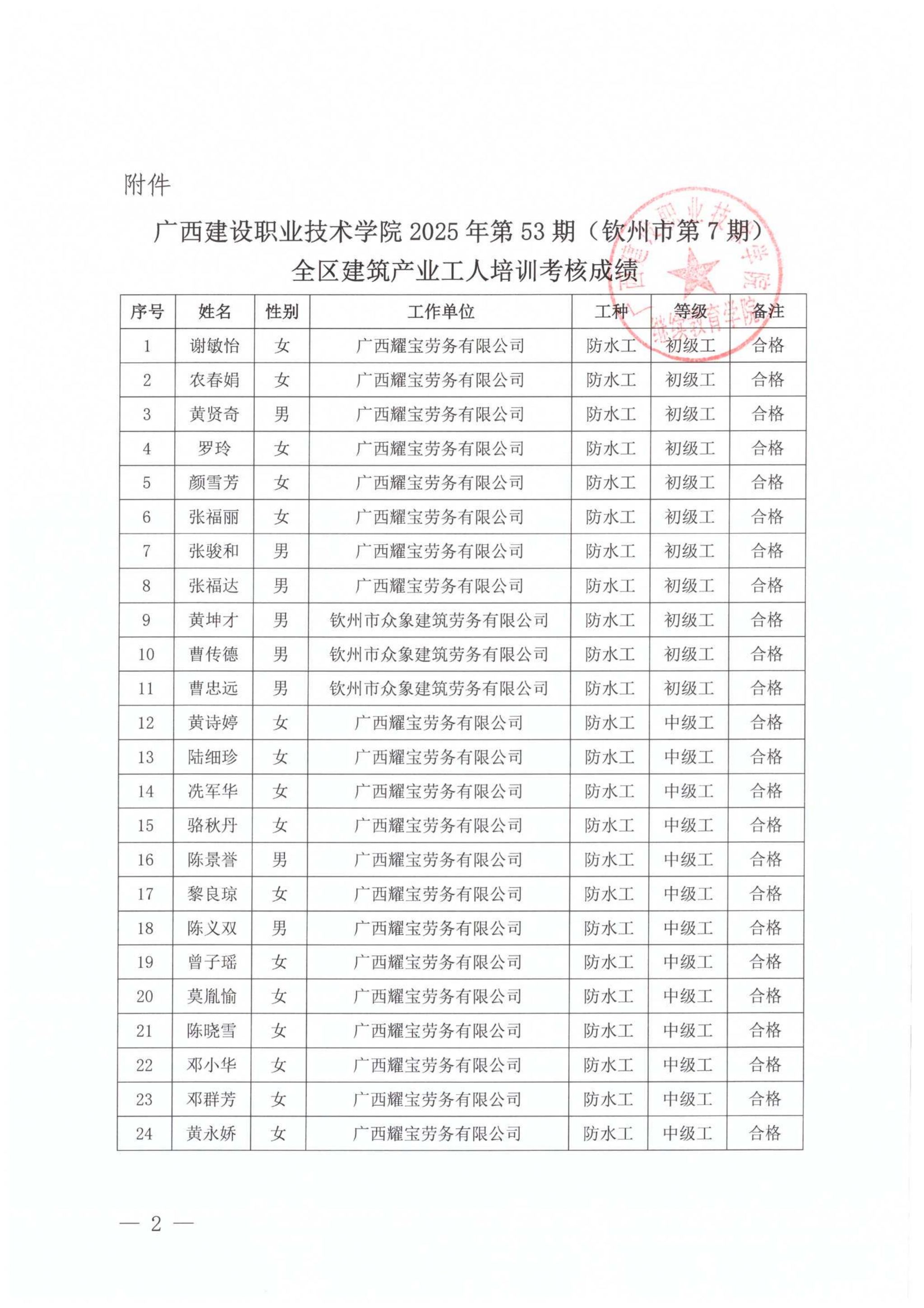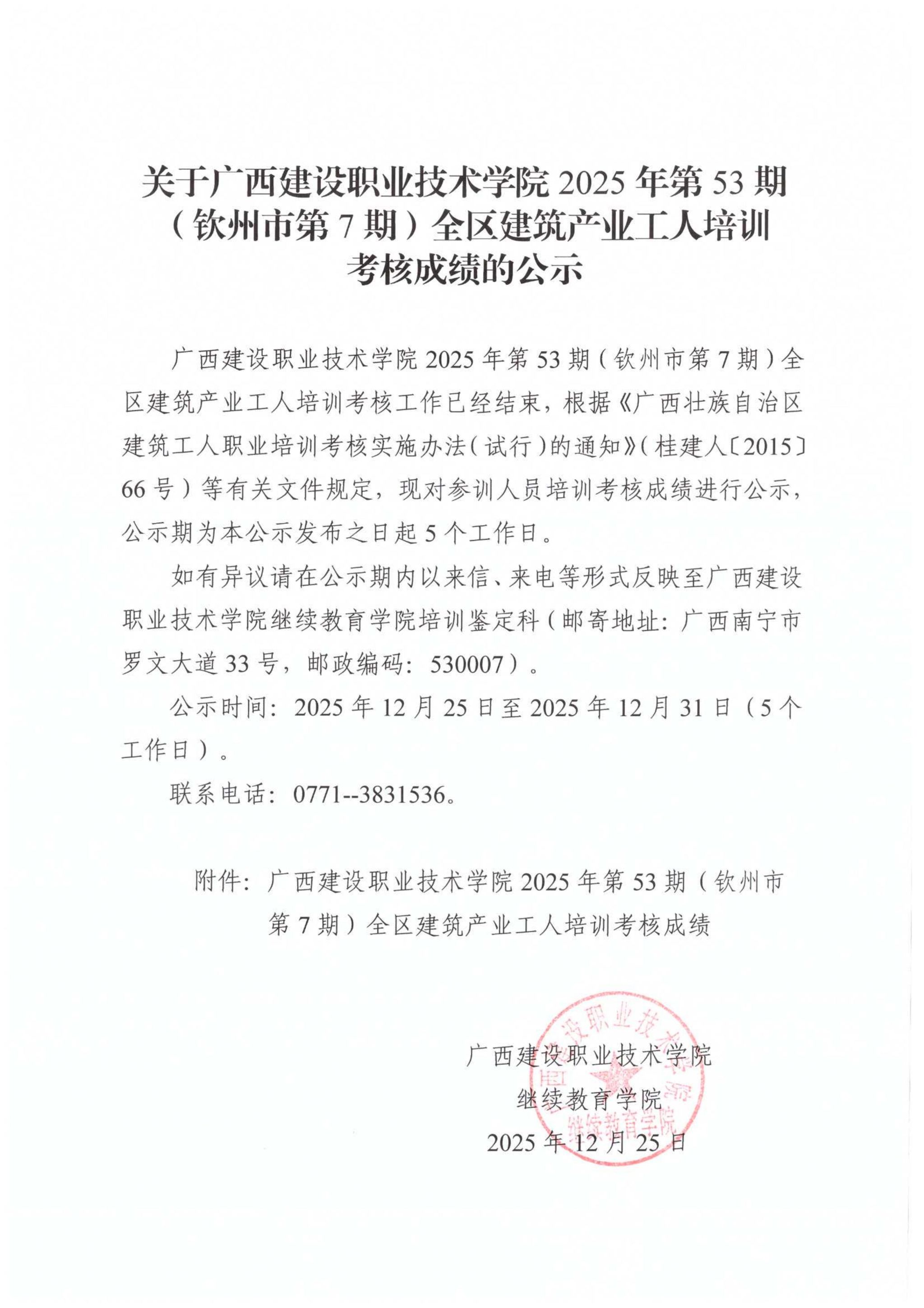培训信息 当前位置: 首页 >> 培训信息 >> 正文 关于乐鱼全球最大体育平台_乐鱼(中国)2025年第53期(钦州市第7期)全区乐鱼全球最大体育平台_乐鱼(中国)产业工人培训考核成绩的公示 发布日期:2025-12-25 点击: 附件【关于乐鱼全球最大体育平台_乐鱼(中国)2025年第53期(钦州市第7期)全区乐鱼全球最大体育平台_乐鱼(中国)产业工人培训考核成绩的公示.pdf】已下载次