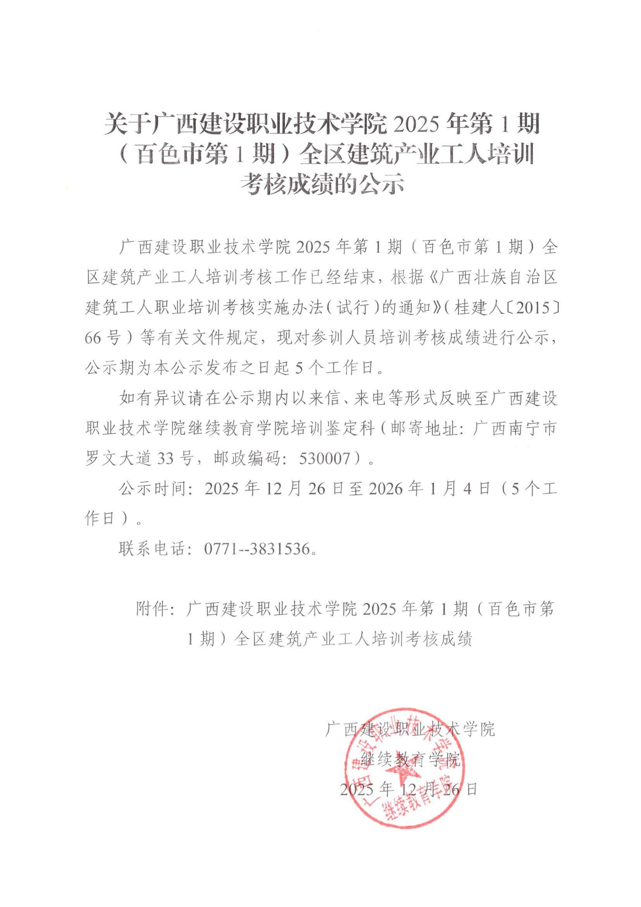 培训信息 当前位置: 首页 >> 培训信息 >> 正文 关于乐鱼全球最大体育平台_乐鱼(中国)2025年第1期(百色市第1期)全区乐鱼全球最大体育平台_乐鱼(中国)产业工人培训考核成绩的公示 发布日期:2025-12-26 点击: 附件【关于乐鱼全球最大体育平台_乐鱼(中国)2025年第1期(百色市第1期)全区乐鱼全球最大体育平台_乐鱼(中国)产业工人培训考核成绩的公示.pdf】已下载次