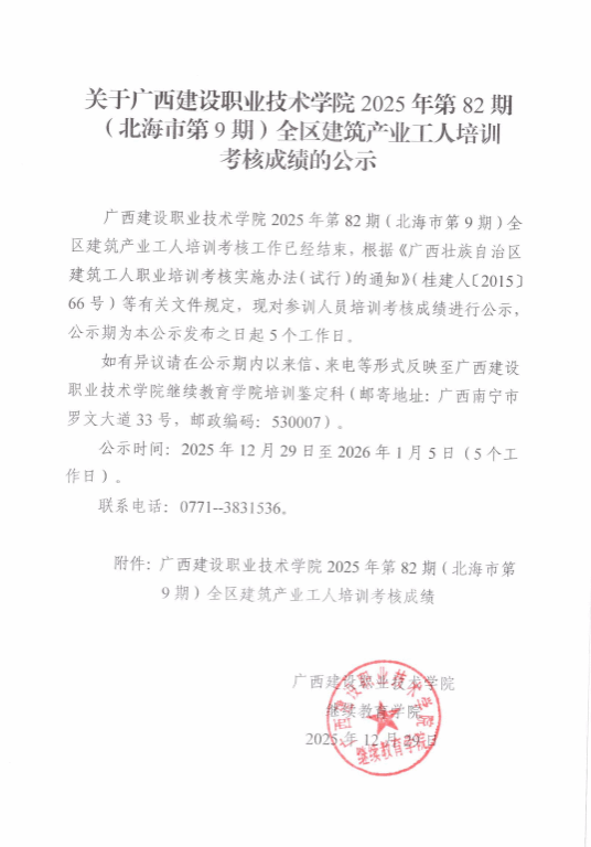 培训信息 当前位置: 首页 >> 培训信息 >> 正文 关于乐鱼全球最大体育平台_乐鱼(中国)2025年全区乐鱼全球最大体育平台_乐鱼(中国)产业工人第82期(北海市第9期)培训考核成绩的公示 发布日期:2025-12-29 点击: 附件【关于乐鱼全球最大体育平台_乐鱼(中国)2025年全区乐鱼全球最大体育平台_乐鱼(中国)产业工人第82期(北海市第9期)培训考核成绩的公示.pdf】已下载次