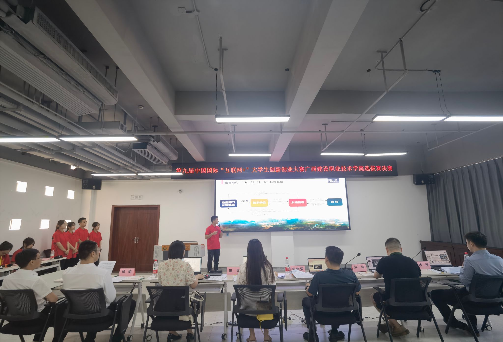 广西建院5月31日讯(文/马克思主义学院 练翠滢图/招生就业处 林秀丽)5月30日下午,第九届中国国际“互联网+”大学生创新创业大赛乐鱼全球最大体育平台_乐鱼(中国)校内选拔赛决赛圆满落幕。广西数广迈越科技有限公司董事长陈建强等10名区内外创新创业大赛专家担任评委,组成校决赛评审委员会。