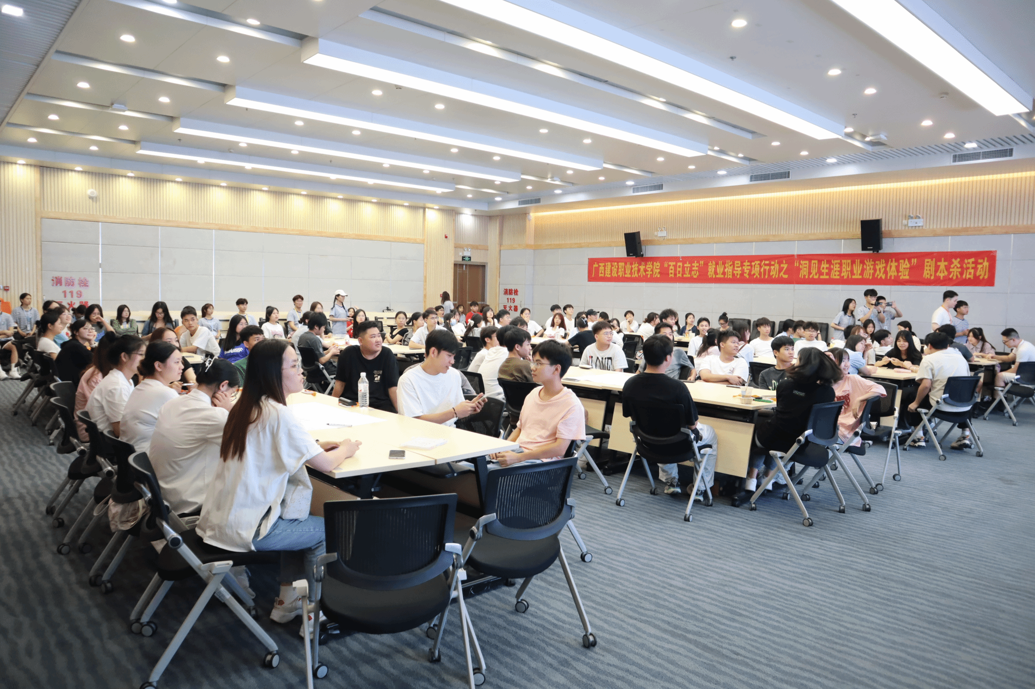 广西建院7月2日讯(招生就业处 练翠滢)6月3日-7月1日,为全面贯彻落实党的二十大精神,认真落实党中央、国务院和自治区党委、政府关于高校毕业生就业工作的重大决策部署,想方设法促进毕业生尽早顺利就业,乐鱼全球最大体育平台_乐鱼(中国)举办了“百日护航”就业指导专项行动之“洞见生涯职业游戏体验”剧本杀系列活动。本活动特别邀请国家认证生涯规划师、洞见生涯游戏引导师李澜歆主讲;2023年“宏志助航计划”建院基地参训学员及乐鱼全球最大体育平台_乐鱼(中国)2024届毕业生共600余人参加了活动。