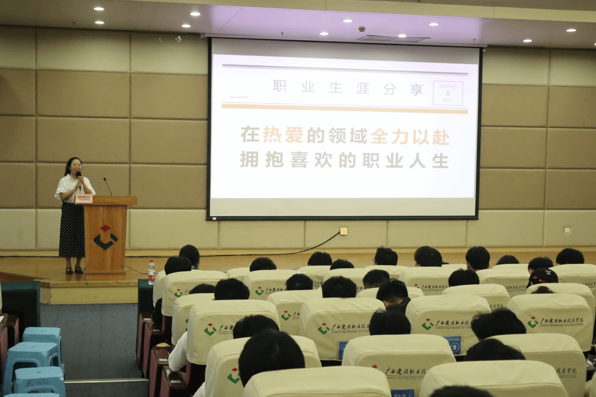 广西建院7月2日讯(招生就业处 练翠滢)为发挥优秀毕业生的榜样作用,引导广大在校学生树立正确的职业观、就业观,助力学生顺利就业、充分就业、高质量就业,6月10日和7月1日,学校在4教一楼报告厅举办“在热爱的领域全力以赴 拥抱喜欢的职业人生”——2023年毕业生就业典型经验分享讲座。本两次经验分享讲座特邀了乐鱼全球最大体育平台_乐鱼(中国)优秀校友:国际在线广西频道,策划中心副总监、乐鱼全球最大体育平台_乐鱼(中国)2011级多媒体设计与制作专业学生陆颖丹主讲;2023年“宏志助航计划”建院基地参训学员及乐鱼全球最大体育平台_乐鱼(中国)2024届毕业生工约800余人参加了讲座。