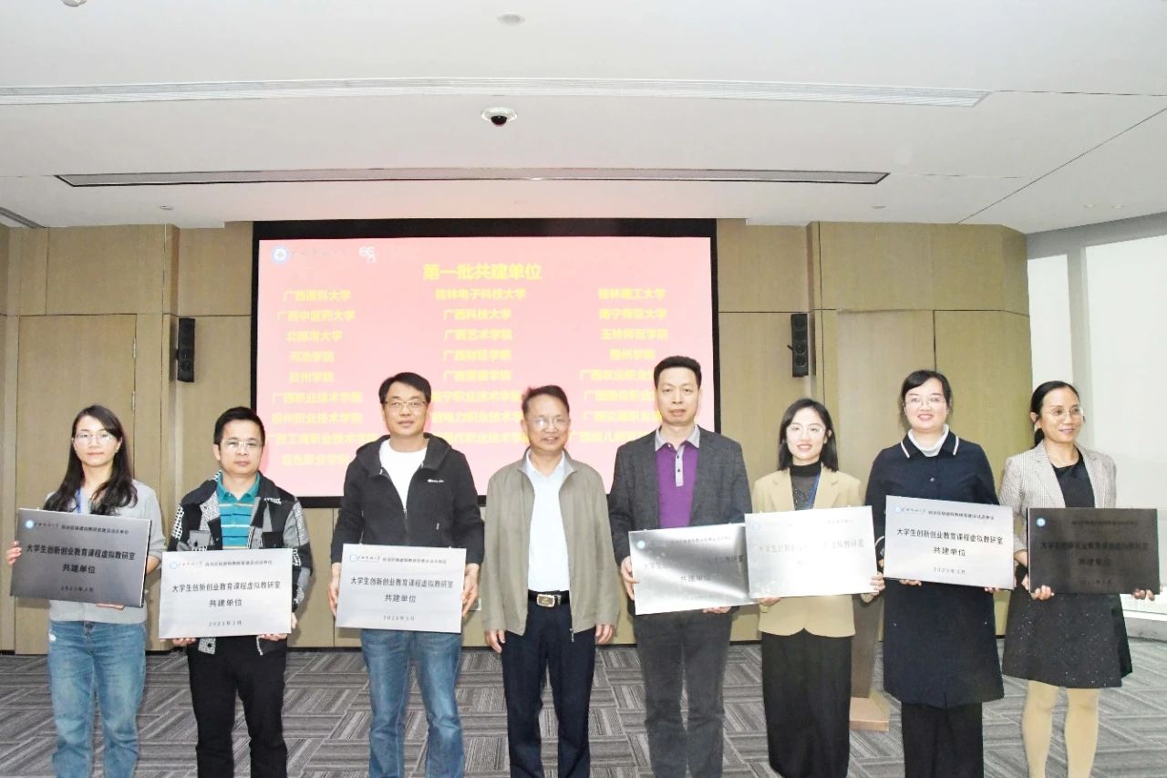 广西建职院讯(招生就业处 林秀丽)3月25日,广西民族大学自治区级“大学生创新创业教育课程虚拟教研室”、中国创业教育者工作网络(EECN)南宁创新创业教研中心揭牌仪式在广西南宁GIG国际金融中心举行。创新创业教育专家学者,中国创业教育者工作网络(EECN)代表,区内25所共建高校领导教师代表,广西民族大学教师代表共60余人参加活动。