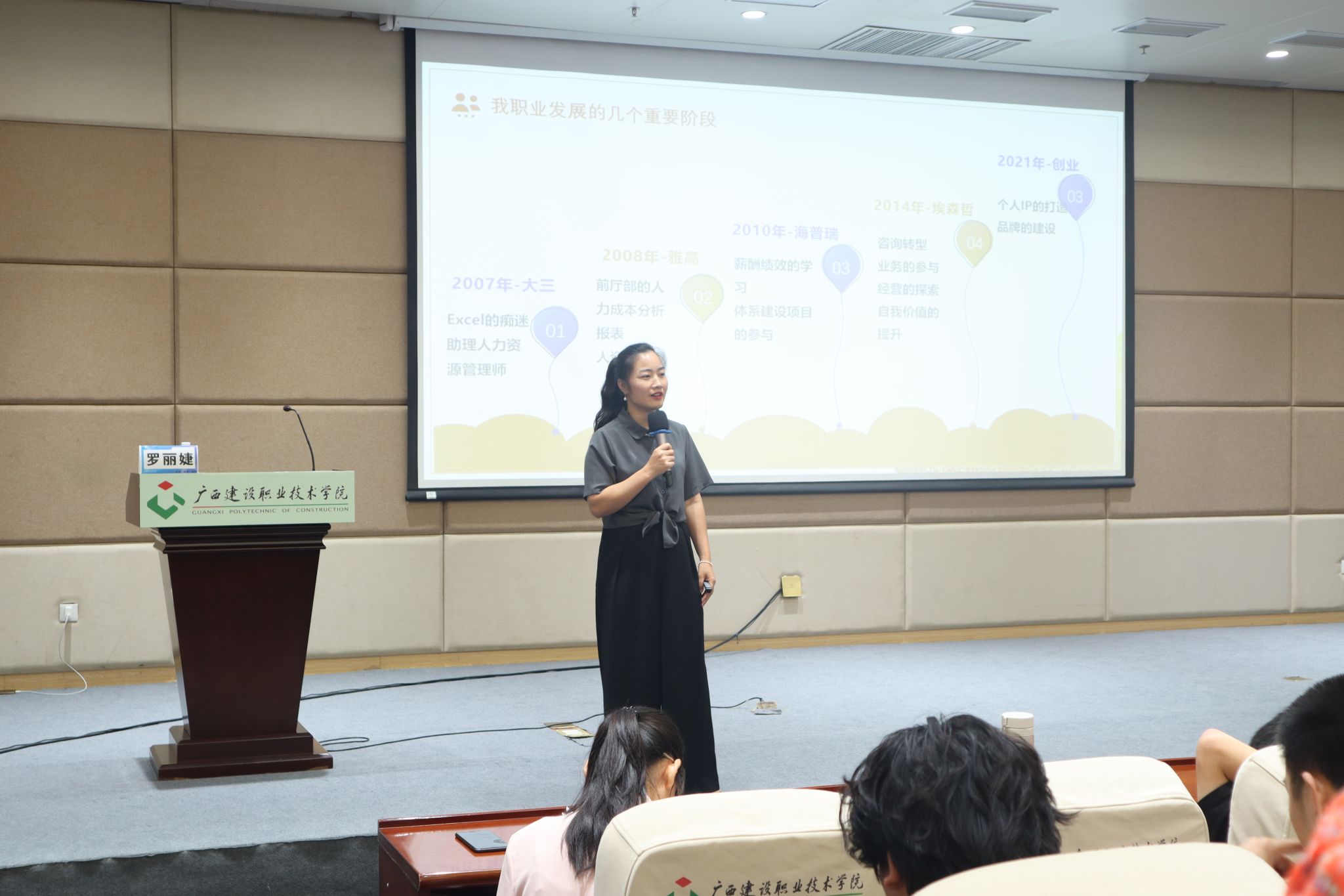 本次讲座有幸邀请到立言咨询创始人、资深企业管理咨询高级顾问罗丽婕老师为同学们开讲。讲座中,罗老师分析当前日新月异的就业环境,及风险与机遇并存的形势,引导学生积极提升自身的核心竞争力。罗老师也结合自身的职场经历和就业创业转型故事,从择业观念的树立、职业生涯的规划、初入职场的身心准备等方面入手,深入浅出、生动形象地给同学们传授了丰富的职业生涯规划知识和求职技能。