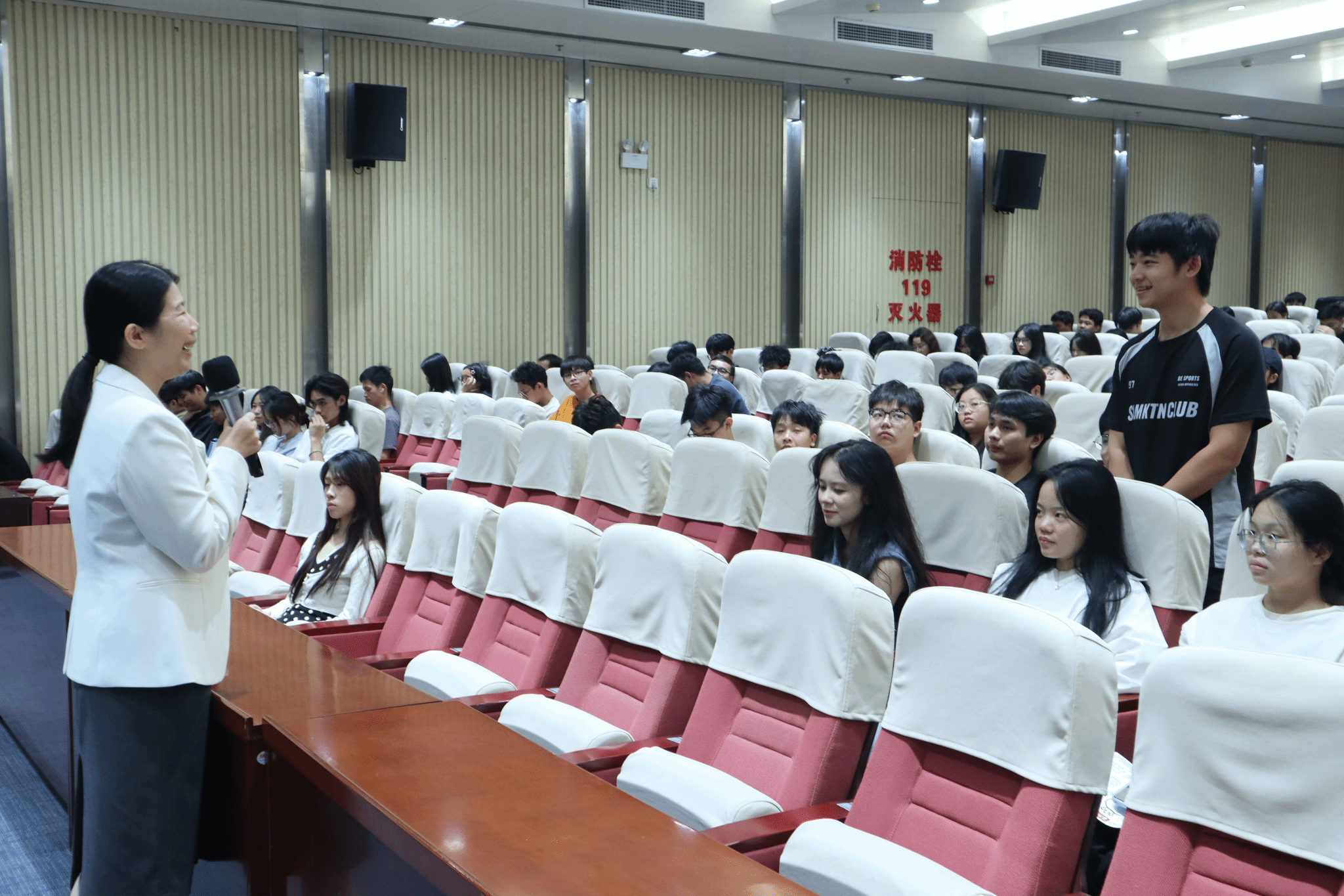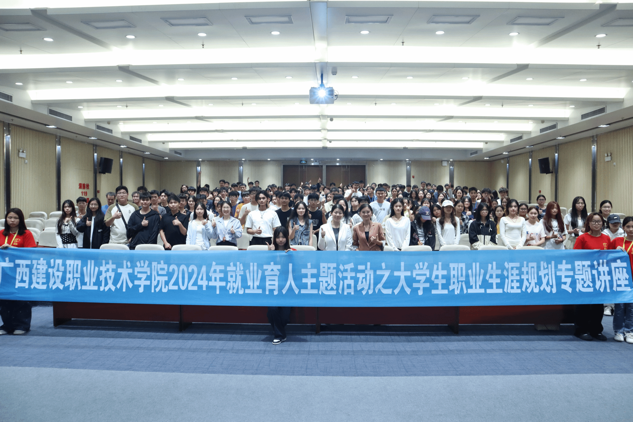 广西建院10月28日讯(招生就业处 练翠滢)10月26日,乐鱼全球最大体育平台_乐鱼(中国)结合第四期“宏志助航计划”培训课程设置,成功举办了就业育人主题活动之大学生职业生涯规划专题讲座。本次活动有幸邀请到中海地产南宁公司项目营销经理、资深企业人力资源管理师郑占桂女士担任主讲嘉宾。来自第四期“宏志助航计划”培训班的学员及乐鱼全球最大体育平台_乐鱼(中国)学生代表共计300余人参与了此次讲座。
