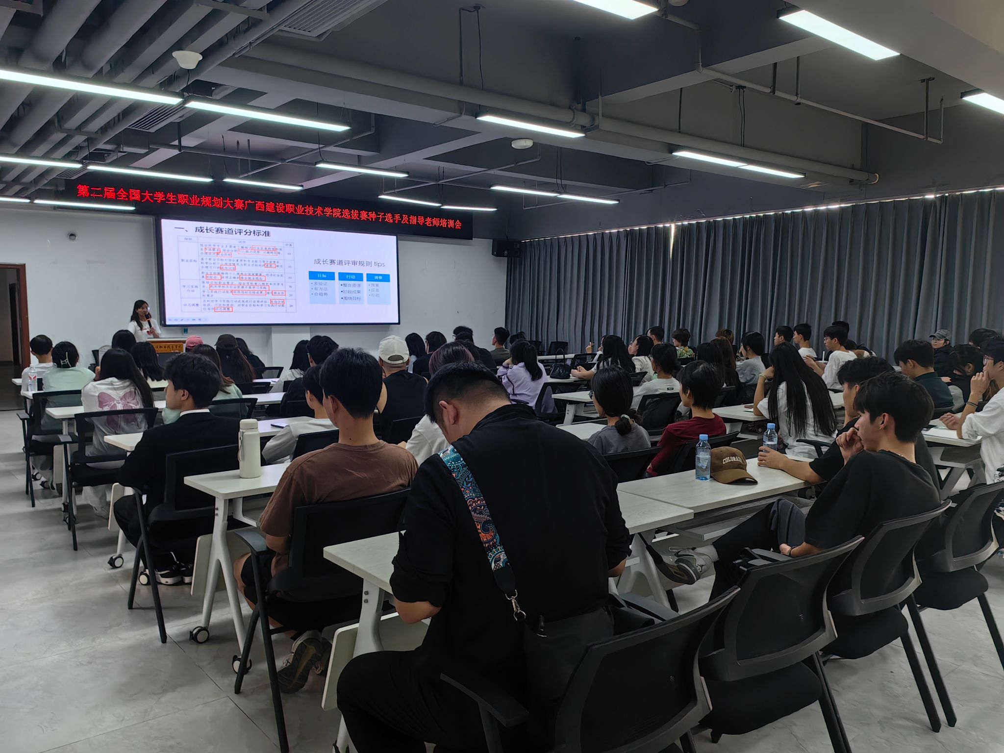 广西建院11月29日讯(图文/练翠滢)11月29日,为了促进乐鱼全球最大体育平台_乐鱼(中国)师生更深入理解关于第二届全国大学生职业规划大赛的相关内容,乐鱼全球最大体育平台_乐鱼(中国)在行政副楼113宣讲室召开了第二届全国大学生职业规划大赛校内选拔赛种子选手及指导老师培训会。本次会议由招生就业处创业科科长林秀丽主讲,二级学院师生代表共100余人参加了培训。