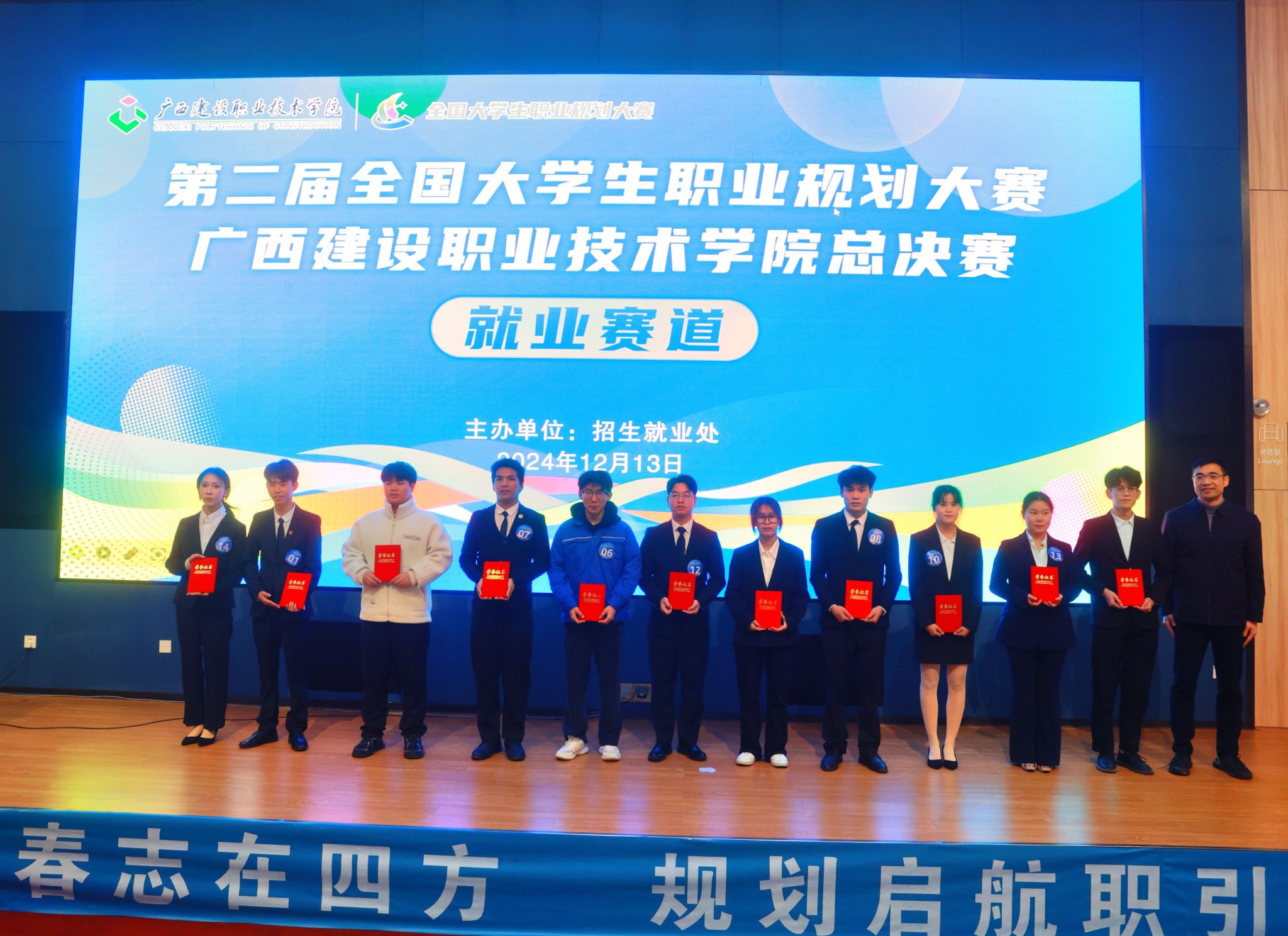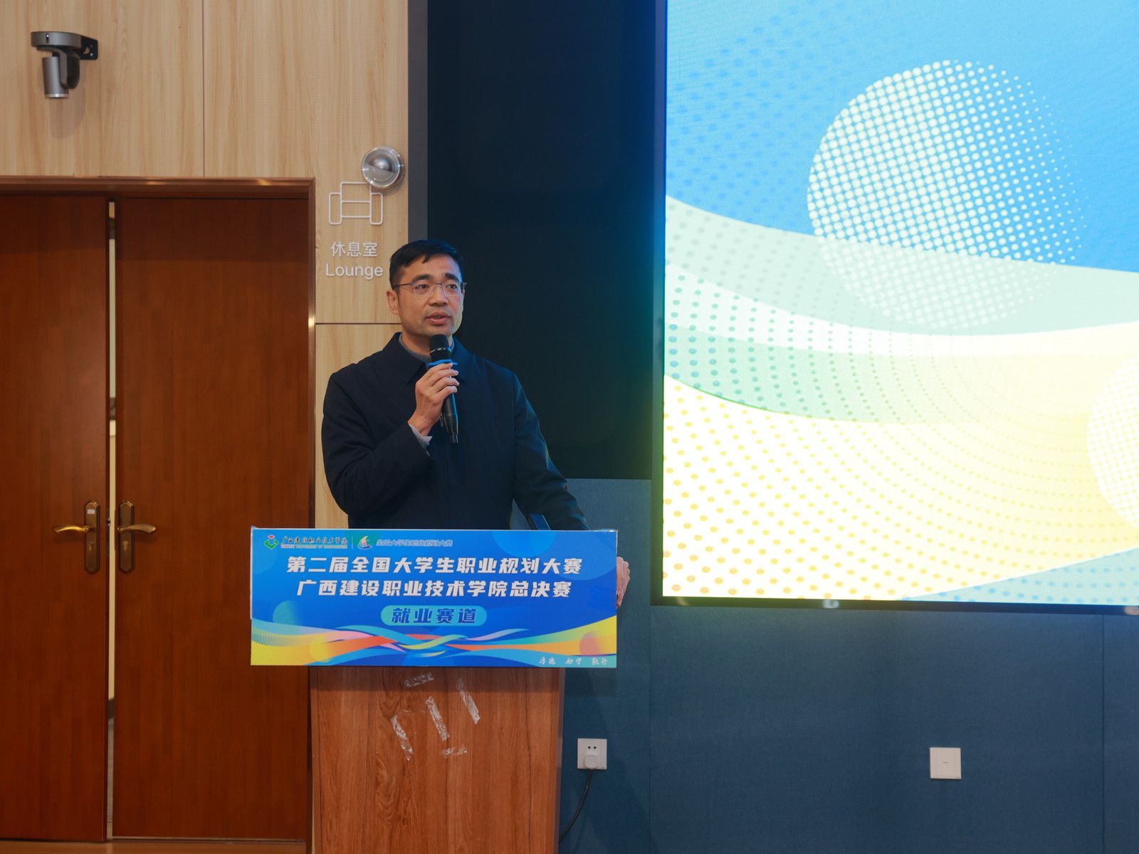 广西建院12月17日讯(招生就业处:图文/练翠滢)为深入贯彻党中央、国务院决策部署,落实《国务院关于印发“十四五”就业促进规划的通知》精神,乐鱼全球最大体育平台_乐鱼(中国)于12月13日成功举办了第二届全国大学生职业规划大赛校级总决赛。副校长柏挺、二级学院分管赛事院领导、招生就业处相关人员、参赛选手及指导老师、观赛学生共300余人参与本次大赛。