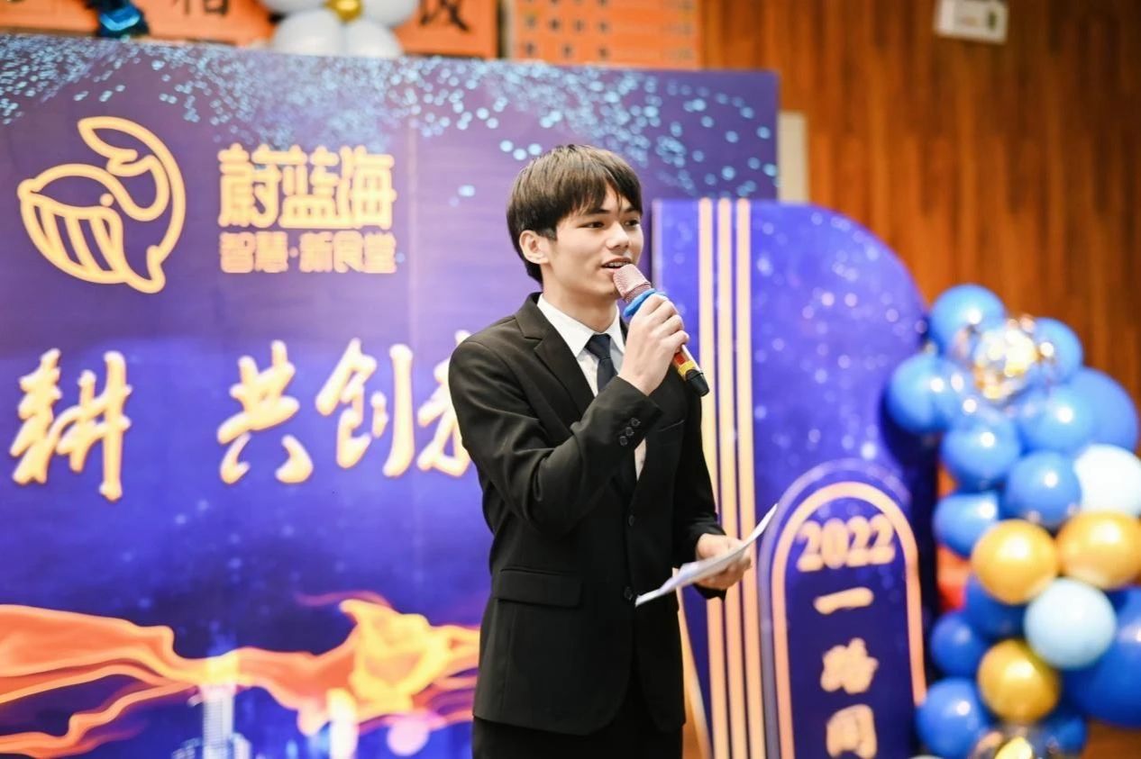图为李峻宇受邀主持公司年会