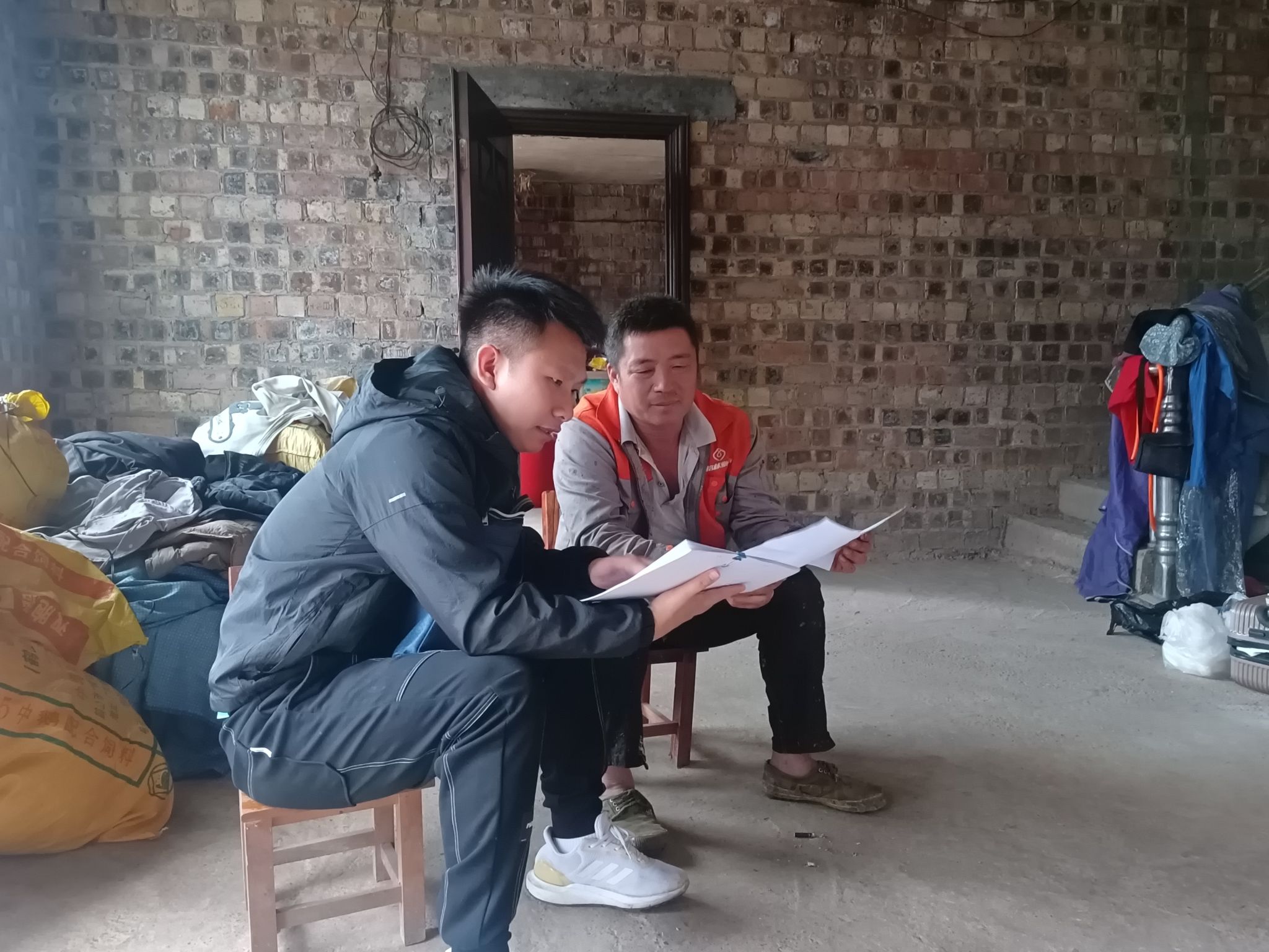 图为李兴隆到群众家中宣传惠民政策