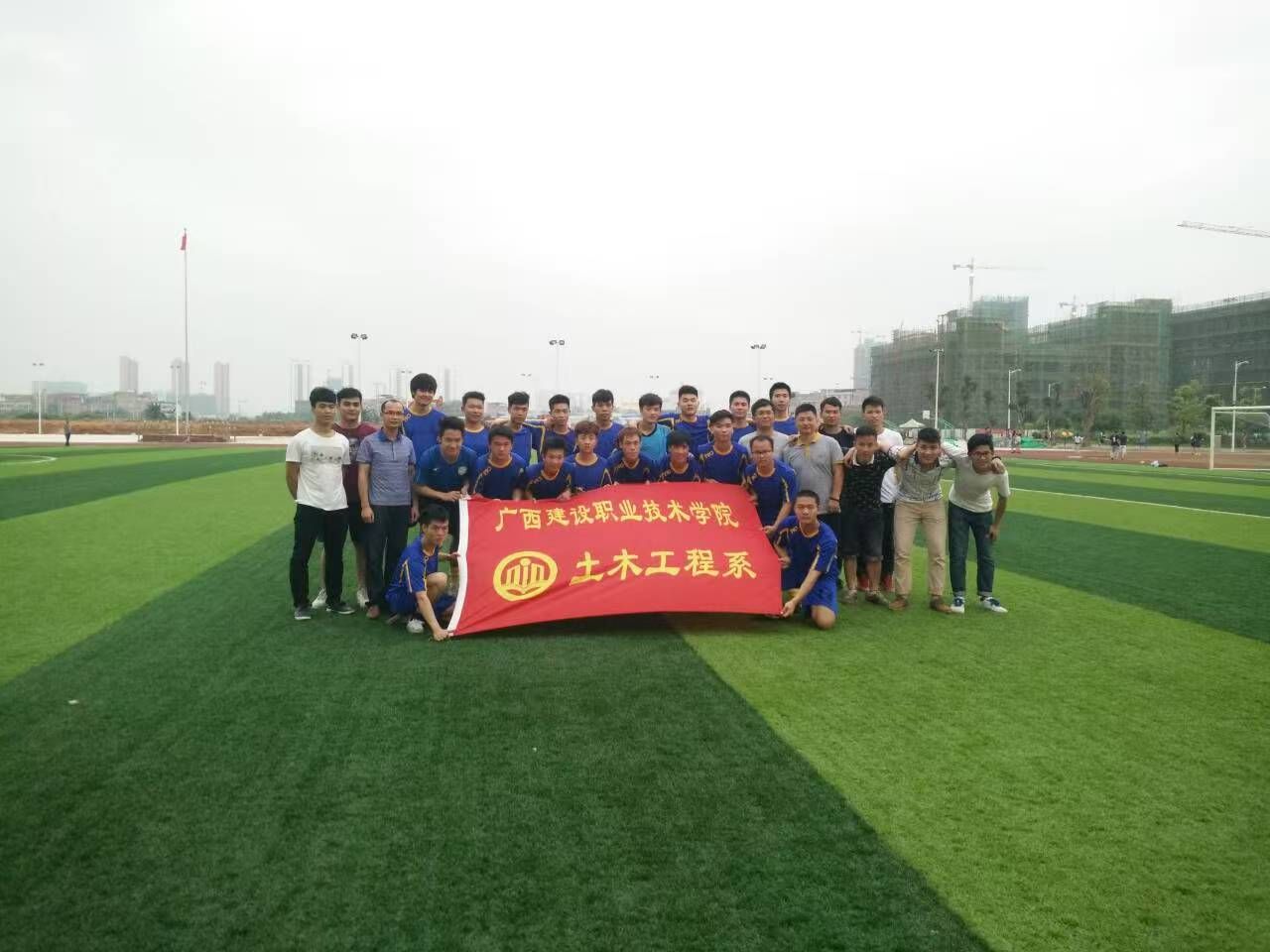 图为李兴隆代表土木工程系队获得足球比赛冠军合影