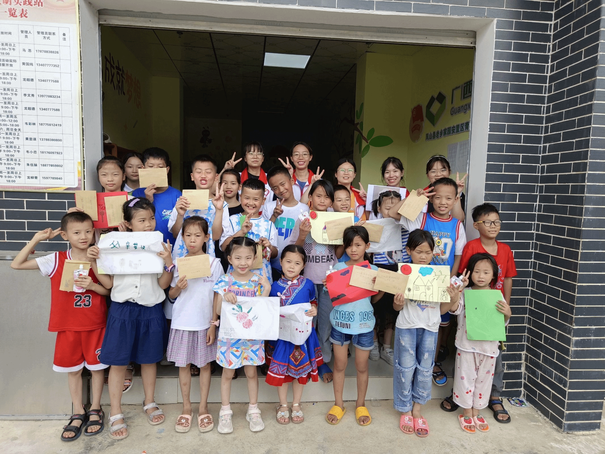图为何珂可儿到村中小学开展“轻课堂”志愿服务(后排右一)
