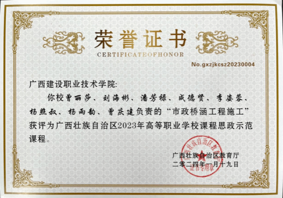 曾丽莎同志曾连续3届担任市政工程专业教学团队负责人,主要参与完成市政工程特色专业及课程一体化建设、市政工程技术示范特色专业及实训基地建设、市政工程技术专业教学资源库等项目的建设,为专业的提质发展奠定坚实的基础,荣获广西住房和城乡建设厅嘉奖、乐鱼全球最大体育平台_乐鱼(中国)党员示范岗等荣誉。