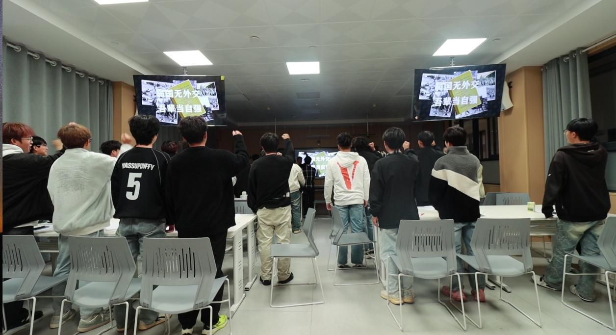 活动伊始,大家围坐在一起,认真研读剧本,在沙盘讲师的引导下,学生们逐渐融入角色,分组化身为各国代表。随着剧情推进,同学们代表着各自国家,努力通过各种手段争取利益,现场争辩激烈。在紧张激烈阶段,同学们的情绪完全被调动起来,“外交官们”的责任与意识在此一刻融为一体。面对不平等的条约,青年学子们振臂高呼,用自己的一腔热血捍卫祖国的权益。