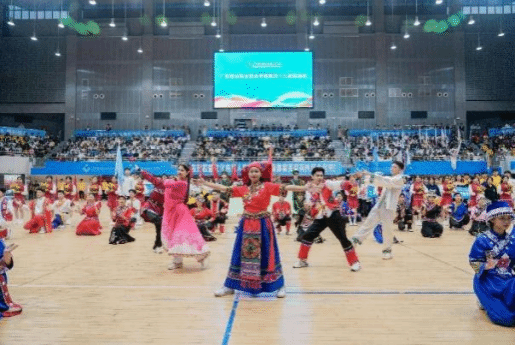 11月30日上午,校运会开幕式在学校体育馆隆重举行。我院方块队由身着少数民族服饰的37名学生组成,他们经过一个月紧锣密鼓的排练,将舞蹈串烧节目《美丽中国》《哈尼宝贝》呈现给现场观众。同学们伴随着具有民族特色的音乐、欢快的节拍载歌载舞,象征着生逢盛世的各族青年在党的光辉照耀下,像石榴籽一样紧紧抱在一起。他们心连心,手拉手,共同高举理想奋斗的火炬,奋力撑起家国振兴的未来,现场的欢呼声经久不息。