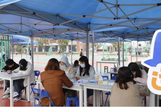 我院师生志愿者热火朝天地撰写誊抄校运会通讯稿