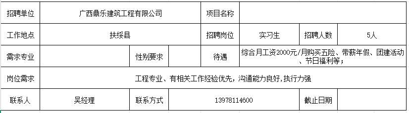 【招聘】广西鼎乐乐鱼全球最大体育平台_乐鱼(中国)工程有限公司