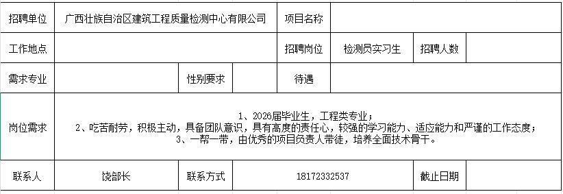 【招聘】广西壮族自治区乐鱼全球最大体育平台_乐鱼(中国)工程质量检测中心有限公司