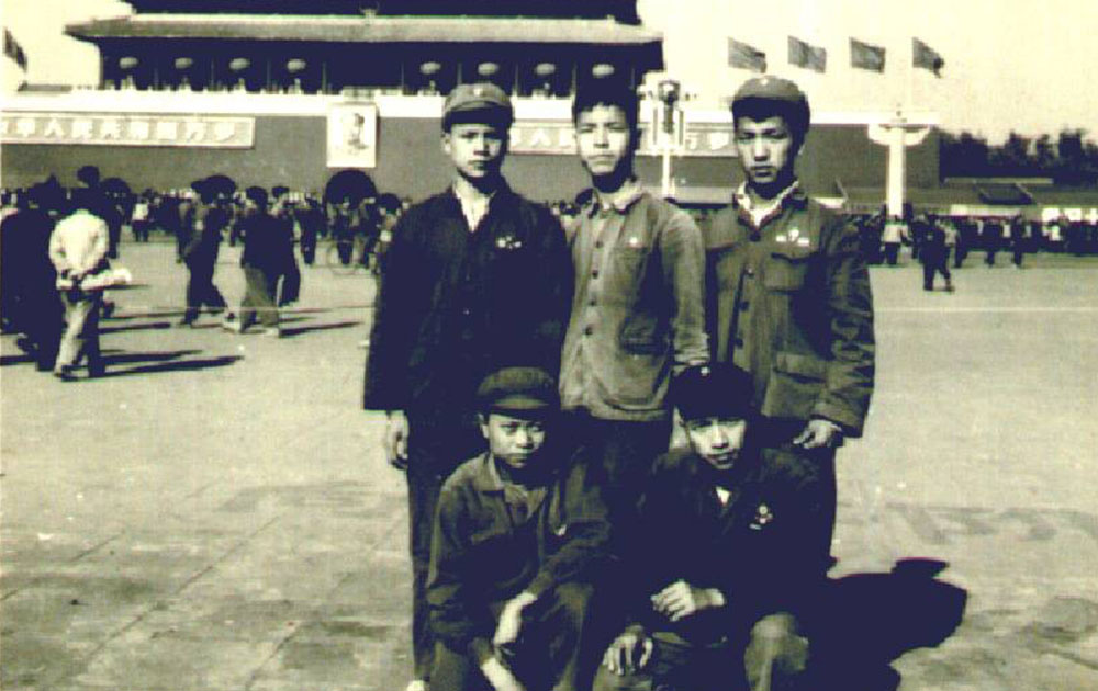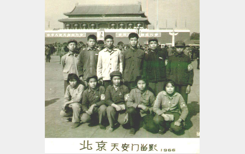 6503班同学在天安门前合影,后排左一为原建工集团董事长张家炳
