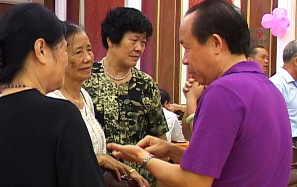 2001年时任广西建工集团董事长张家炳拜见恩师谭肖娟、周芷芳、白秀珍