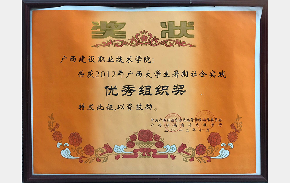 2012年广西大学生暑期社会实践优秀组织奖