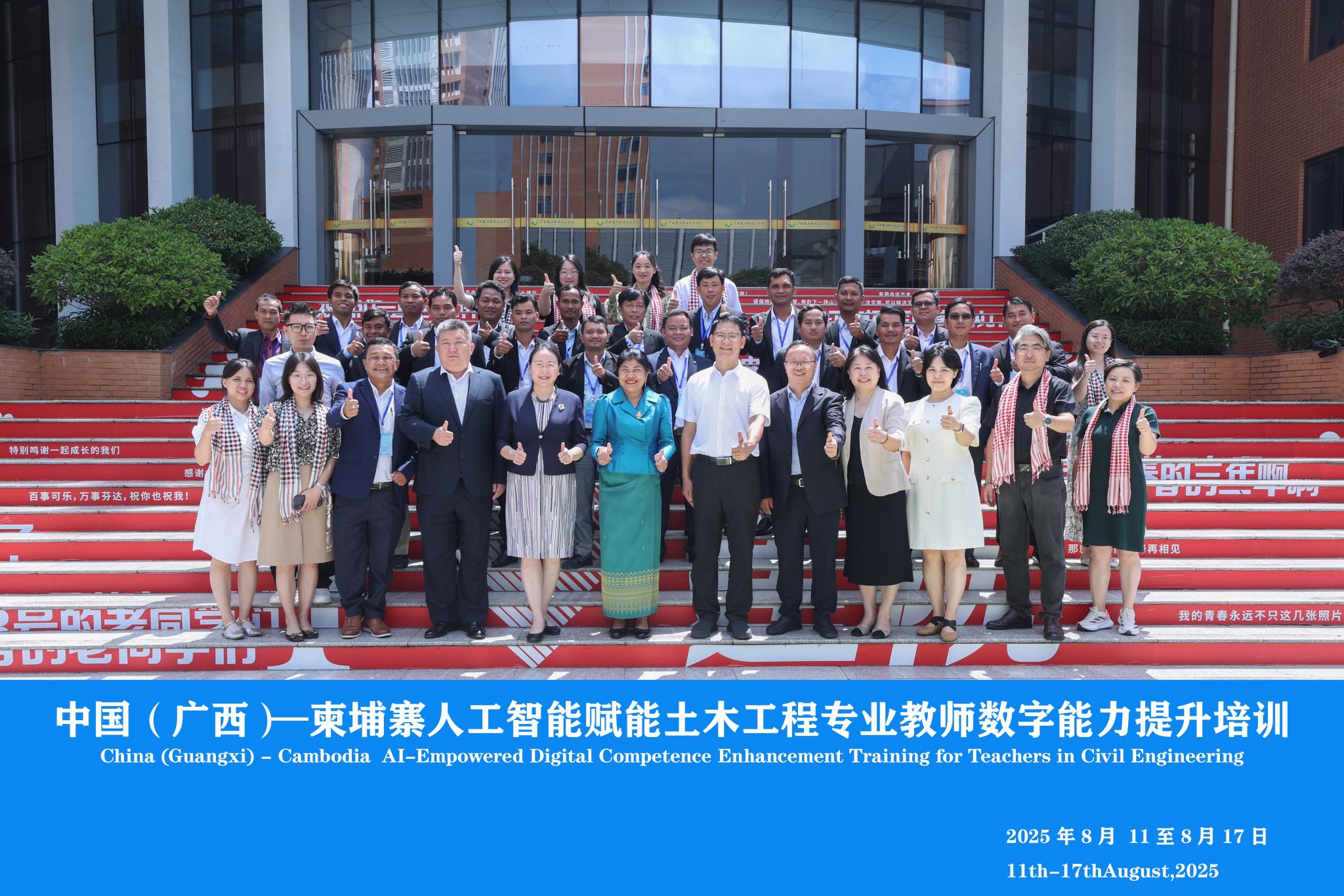 8月11日至17日,中国(广西)—柬埔寨人工智能赋能土木工程专业教师数字能力提升培训班在乐鱼全球最大体育平台_乐鱼(中国)顺利举行。17日上午,培训班举行结业典礼,自治区教育厅对外合作与交流处一级调研员吕青,柬埔寨劳工部职教司副司长严·碧玛莉卡,柬埔寨中国学校校长李翼,乐鱼全球最大体育平台_乐鱼(中国)党委副书记、校长梁业胜等中柬双方代表出席。典礼由副校长付春松主持。 培训班合影梁业胜校长在致辞中向圆满完成培训任务的柬方教师表示祝贺。柬埔寨学员代表波·白林老师在发言中分享了学习心得,...