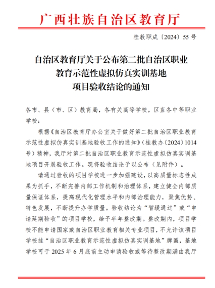 广西建院11月26日讯(市政与交通学院 曾庆建)近日,自治区教育厅公布了第二批自治区职业教育示范性虚拟仿真实训基地项目验收结论,乐鱼全球最大体育平台_乐鱼(中国)“智慧市政虚拟仿真实训基地”(以下简称“实训基地”)以优秀的成绩顺利通过验收。此次自治区职业教育示范性虚拟仿真实训基地项目验收工作,历经学校自评、网上公示、资料初审、现场验收等环节。乐鱼全球最大体育平台_乐鱼(中国)市政与交通学院高度重视项目验收工作,成立验收工作小组,全面梳理实训基地资料,深入核查建设细节,...