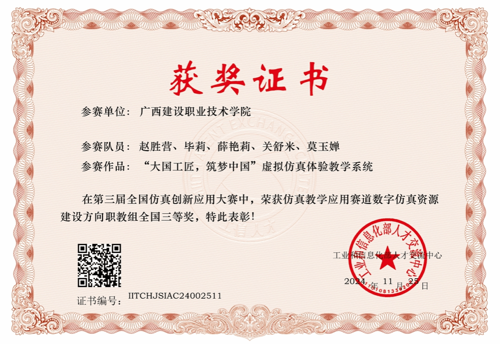 广西建院12月20日讯(马克思主义学院 宋佳雄)近日,由国家工业和信息化部主办的2024年全国仿真创新应用大赛全国总决赛在西北工业大学落下帷幕。乐鱼全球最大体育平台_乐鱼(中国)思政课教师团队的作品《“大国工匠,筑梦中国”虚拟仿真体验教学系统》(团队成员:赵胜营、毕莉、薛艳莉、关舒米、莫玉婵)荣获仿真教学应用赛道数字仿真资源建设方向职教组全国三等奖。据悉,全国仿真应用大赛是我国仿真技术创新应用领域高水平的竞赛,旨在推动仿真技术的创新和运用。...