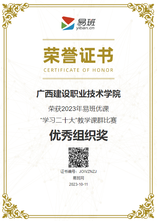 广西建院10月16日讯(党委学生工作部 何丽梅)近日,乐鱼全球最大体育平台_乐鱼(中国)在由教育部易班发展中心组织开展的2023年易班优课“学习二十大”教学课群比赛中荣获“优秀组织奖”。据悉,本次比赛面向全国各地易班共建高校的大学生开展,全国共231所高校参加,乐鱼全球最大体育平台_乐鱼(中国)以参赛课群总活跃度55331人次、全国第16名的成绩获此殊荣。长期以来,学校高度重视易班建设工作,始终坚持立德树人根本任务,积极探索易班网络育人的新思路、新方法、新途径,在网络育人内涵建设方面取得了良好成效,...