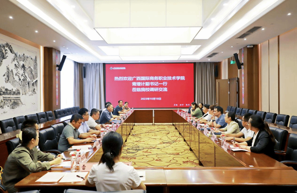 广西建院10月19日讯(党委学生工作部 文/黄楚凌 图/马凯)10月18日上午,广西国际商务职业技术学院(以下简称“国商院”)党委副书记青增计一行15人到乐鱼全球最大体育平台_乐鱼(中国),重点围绕“一站式”学生社区建设、辅导员工作室建设、大学生心理健康教育、大学生资助等工作开展调研交流,乐鱼全球最大体育平台_乐鱼(中国)副校长伍耿清出席交流座谈会并陪同调研,学校党委学生工作部、财务处有关领导,相关二级学院负责人参加座谈。座谈会在乐鱼全球最大体育平台_乐鱼(中国)一教一楼会议厅举行。会上,双方分别介绍了本校“...