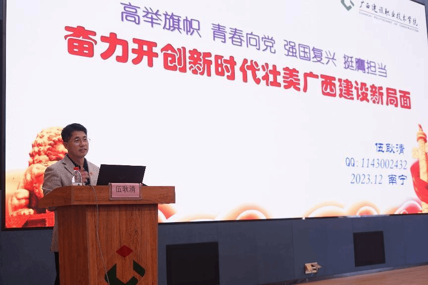 广西建院12月5日讯(土木工程学院 文/冯光帆 图/杨凯文)12月5日下午,学校副校长伍耿清走进土木工程学院班级团支部,为监理2201班和建工2208班团员和青年上团课。土木工程学院全体辅导员到场学习。团课上,伍耿清副校长以《“高举旗帜青春向党,强国复兴挺膺担当”——奋力开创新时代壮美广西建设新局面》为题,以学习习近平总书记同团中央新一届领导班子成员集体谈话时的重要讲话精神和团十九大精神为开篇,重点围绕“三大定位新使命”...