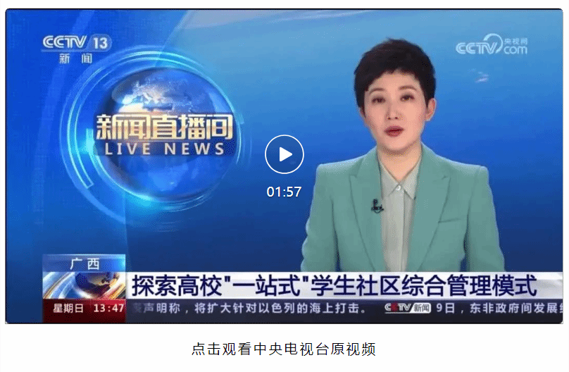广西建院12月12日讯(党委学生工作部 黄楚凌)12月10日,中央电视台CCTV-13新闻频道《新闻直播间》栏目以《广西探索高校“一站式”学生社区综合管理模式》为题报道广西高校开展“一站式”学生社区的建设成果,其中以乐鱼全球最大体育平台_乐鱼(中国)在学生社区开展大学生创意集市活动为切入点,展现了乐鱼全球最大体育平台_乐鱼(中国)在“一站式”学生社区综合管理模式建设中的创新探索与多元实践。节目画面乐鱼全球最大体育平台_乐鱼(中国)学生在“一站式”学生社区参加“大学生创意创业集市”实践活动乐鱼全球最大体育平台_乐鱼(中国)学生在“一站式”...