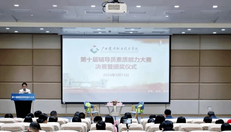 广西建院3月16日讯(党委学生工作部 文/马凯 图/程舒阳 马凯)3月14日,乐鱼全球最大体育平台_乐鱼(中国)第十届辅导员素质能力大赛决赛暨颁奖仪式在四号教学楼一楼报告厅举行。学校副校长伍耿清出席比赛现场并讲话,各二级学院学管领导,学工部、团委全体老师,全体专职辅导员及班主任代表到场观摩。本次大赛邀请了广西大学学生工作部部长黄必春、广西民族大学学生工作部副部长韩燕燕、广西水利电力职业技术学院学生工作部部长李晓红、广西国际商务职业技术学院学生工作部部长樊永生、...