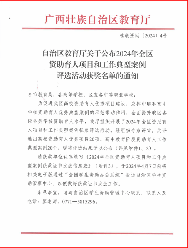 广西建院4月7日讯(党委学生工作部 欧嘉卡 杨栋)近日,自治区教育厅印发《关于公布2024年全区资助育人项目和工作典型案例评选活动获奖名单的通知》(桂教资助〔2024〕4号),在全区高校范围内共评选出资助育人优秀项目20项。乐鱼全球最大体育平台_乐鱼(中国)申报的项目《家庭经济困难学生专业考证奖学金》荣获“2024年全区高校资助育人优秀项目”三等奖。文件通知“家庭经济困难学生专业考证奖学金”项目以“资助+实践”为理念,以“资助为抓手,育人为导向”的工作思路,...