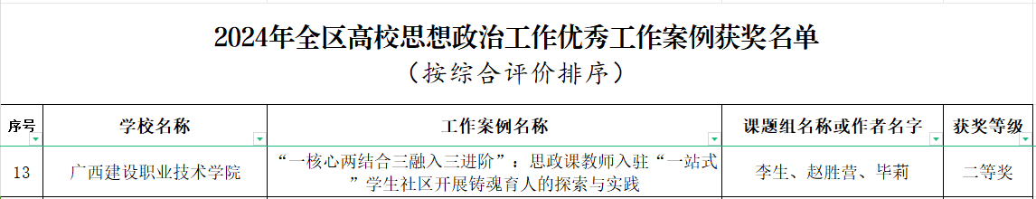 广西建院5月15日讯(马克思主义学院 曹桃) 近日,自治区教育厅公布了2024年全区高校思想政治工作优秀调研报告和工作案例获奖名单,乐鱼全球最大体育平台_乐鱼(中国)荣获优秀工作案例二等奖1项,优秀调研报告三等奖2项。近年来,乐鱼全球最大体育平台_乐鱼(中国)始终坚持以习近平新时代中国特色社会主义思想为指导,深入学习贯彻习近平总书记对学校思政课建设作出的重要指示精神,坚持思政课建设与党的创新理论武装同步推进,守正创新推动思政课建设内涵式发展。下一步,乐鱼全球最大体育平台_乐鱼(中国)将以更高标准、...