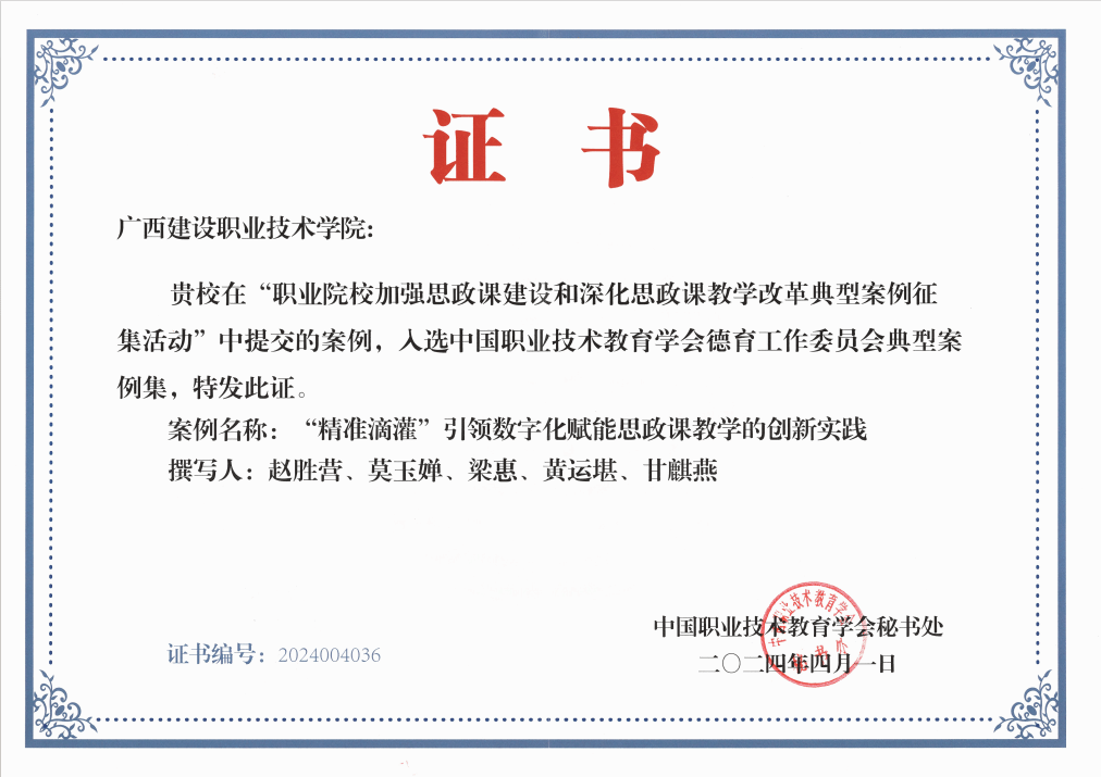 广西建院5月18日讯(马克思主义学院 莫玉婵)近日,中国职业技术教育学会公布了职业院校加强思政课建设和深化思政课教学改革典型案例征集活动评选结果。乐鱼全球最大体育平台_乐鱼(中国)思政课教学改革案例《“精准滴灌”引领数字化赋能思政课教学的创新》入选中国职业技术教育学会德育工作委员会典型案例集。近年来,乐鱼全球最大体育平台_乐鱼(中国)始终坚持以习近平新时代中国特色社会主义思想为指导,贯彻习近平总书记对学校思政课建设作出的重要指示精神,落实立德树人根本任务,在思政课教学改革方面取得了显著成效。...