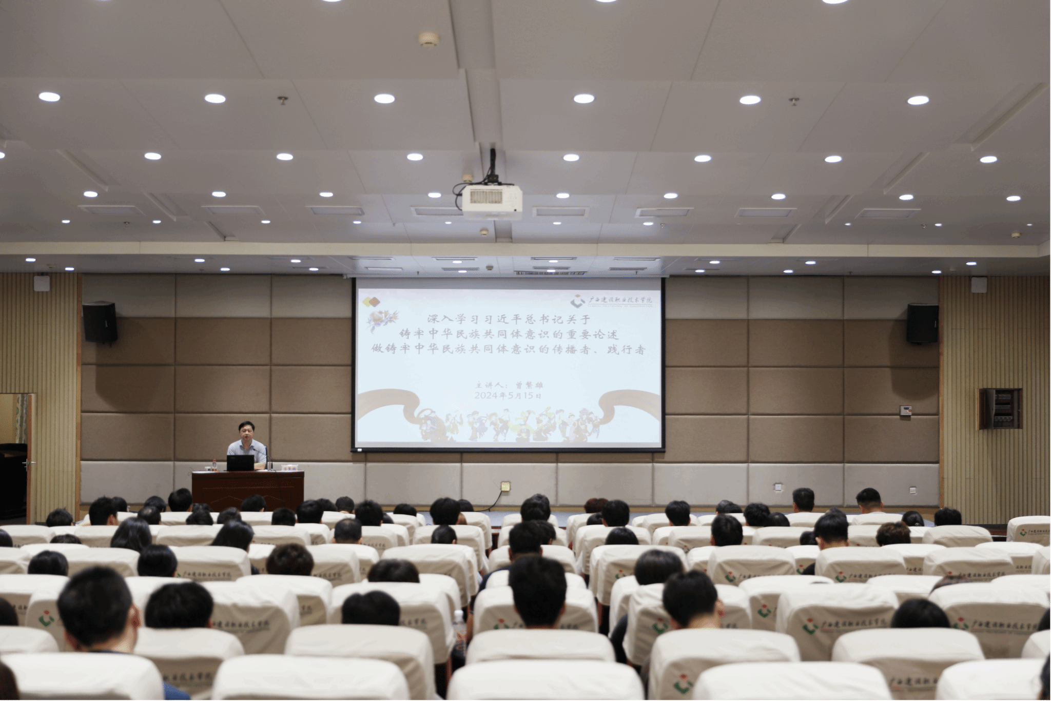 广西建院5月16日讯(文/党委组织部 张玉燕 图/党委宣传部 韦植巍)为深入贯彻落实习近平总书记关于加强和改进民族工作的重要思想,紧紧围绕铸牢中华民族共同体意识工作主线,坚定把握团结奋斗的时代要求,5月15日上午,乐鱼全球最大体育平台_乐鱼(中国)举办铸牢中华民族共同体意识专题报告会,学校党委副书记曾繁雄作专题报告。报告会现场曾繁雄副书记以《深入学习习近平总书记关于铸牢中华民族共同体意识的重要论述 做铸牢中华民族共同体意识的传播者、践行者》...