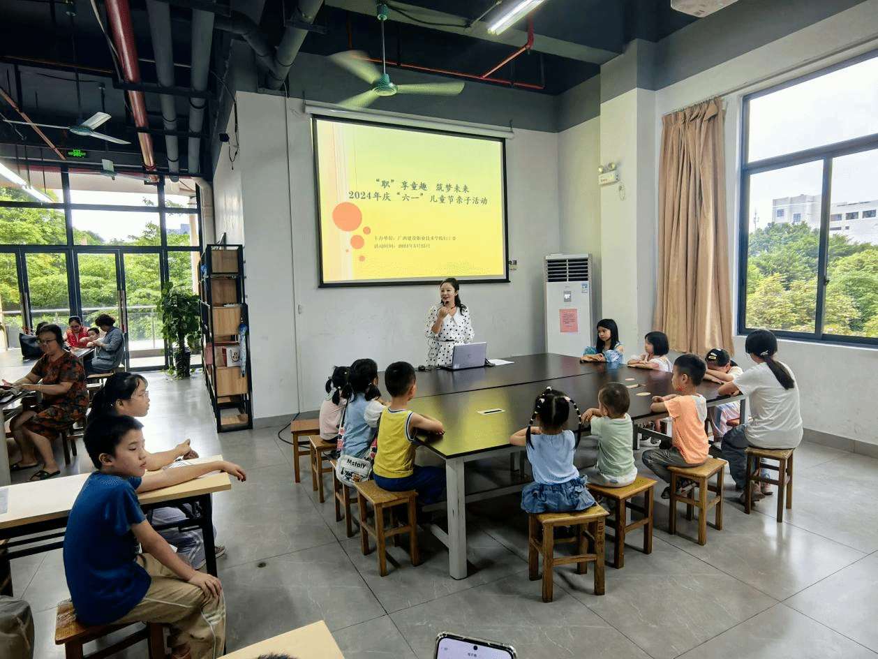 广西建院6月5日讯(工会 黄军萍)为庆祝“六一”国际儿童节,丰富教职工子女文化生活,学校精心策划了以“‘职’享童趣 筑梦未来”为主题的儿童节亲子活动,通过组织教职工和孩子们共同参与《鲁班小讲堂》讲座问答、制作手工、跳蚤市场等活动,让教职工和孩子们一起感受节日的快乐,增进亲子感情。活动伊始,学校工会的老师为孩子们开设了《鲁班小讲堂》,以生动有趣的方式向孩子们讲述了“百匠圣祖鲁班的传奇故事”,让孩子们在轻松愉快的氛围中学习中国传统文化。...