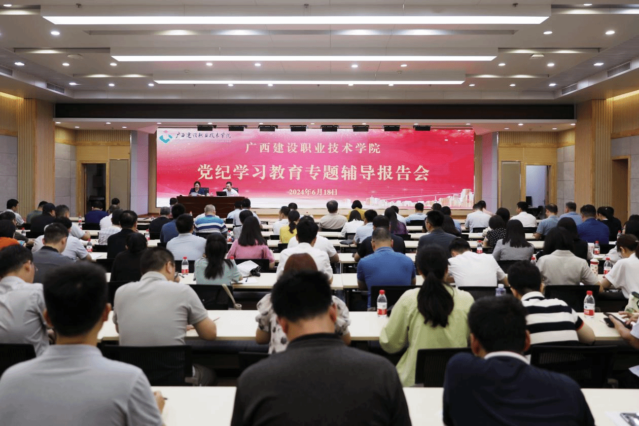 广西建院6月19日讯(党委宣传部 韦植巍)为深入学习贯彻新修订的《中国共产党纪律处分条例》,不断强化全体党员干部的纪律观念和规矩意识,一体推进不敢腐、不能腐、不想腐,6月18日,乐鱼全球最大体育平台_乐鱼(中国)在四教二楼报告厅举办党纪学习教育专题辅导报告会,邀请自治区纪委监委第十监督检查室主任胡忠恒作《以严明的纪律推进党的自我革命》专题辅导。学校党委书记刘晓红主持报告会。报告会现场讲座中,胡忠恒主任围绕什么是党的纪律、为什么必须加强党的纪律建设、...