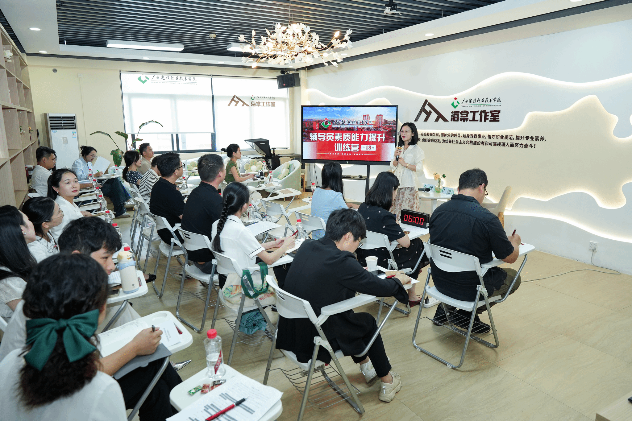 广西建院9月14日讯(管理工程学院 文/黄欣欣 封炫妃 图/宋景弘)9月13日下午,乐鱼全球最大体育平台_乐鱼(中国)辅导员素质能力提升训练营(以下简称“训练营”)在海棠工作室举办,学校党委学生工作部领导出席活动,来自7个二级学院的27位辅导员参训。训练营现场本期训练营模拟辅导员素质能力大赛案例研讨赛项,采用AB角形式,以“你提问,我回答”的方式,围绕案例共同辨析原因、研讨对策、总结规律,考察辅导员分析、研判和解决问题的能力。研讨分“学员分组研讨+...