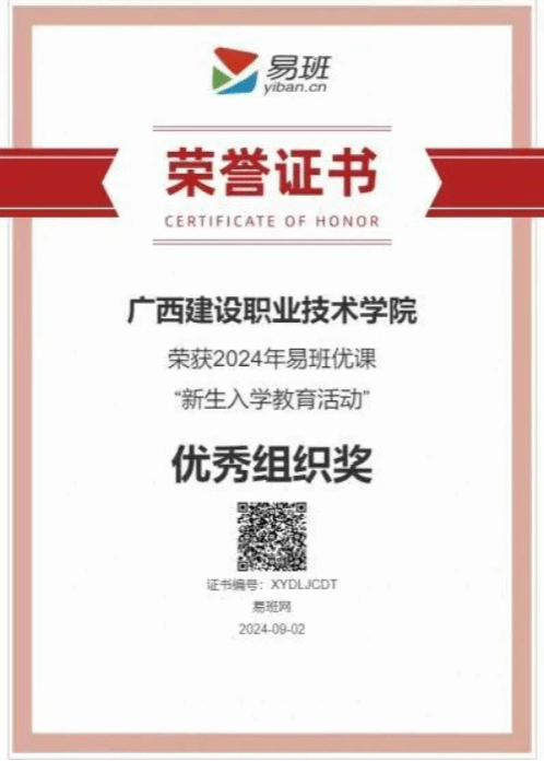 广西建院9月22日讯(党委学生工作部 刘晗蓓)近日,教育部易班发展中心公布了2024年易班优课“新生入学教育活动”、2024年易班优课“党建学习课群比赛”两项大赛评比结果,乐鱼全球最大体育平台_乐鱼(中国)在两项大赛中荣获“优秀组织奖”。这是乐鱼全球最大体育平台_乐鱼(中国)易班今年继获2024年第一届易班优课“求职辅导课程学习大赛”、第一届易班优课“美食图文课大赛”两项大赛的“优秀组织奖”后,再获全国易班优课荣誉。易班优课“新生入学教育活动”和易班优课“党建学习课群比赛”...