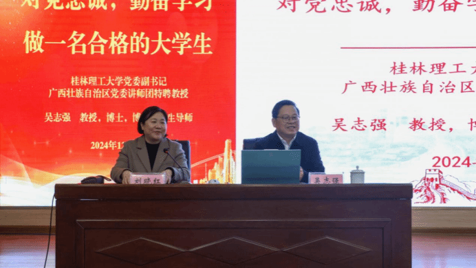 广西建院12月7日讯(团委 文/宋丽 谢湘宜 图/陈乃锦 李强)12月6日下午,桂林理工大学党委副书记吴志强教授在四教二楼报告厅为乐鱼全球最大体育平台_乐鱼(中国)“青马工程”骨干班学员讲授了一场主题为《对党忠诚,勤奋学习,做一名合格的大学生》的精彩讲座,学校党委书记刘晓红出席并主持讲座。党委学生工作部部长周舟,马克思主义学院党总支书记邱岚,团委书记曾小贵,以及校级“青马工程”骨干班全体学员参加讲座。吴志强教授在党课中强调,对党忠诚是新时代大学生的基本政治素养。...